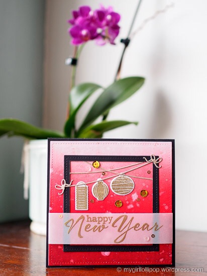 I was really looking forward to making this card as I wanted to use the bold colours that are associated with Chinese New Year. I wouldn’t normally choose black for a card base, but I’m so glad I did as I love the contrast with the red and gold.