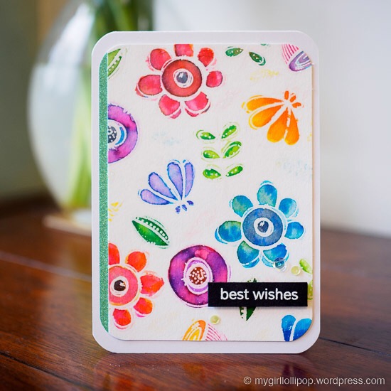 I got some sparkle embossing powder at the same time as the WPlus9 Doodle Buds set, so I decided to have fun and create a background using them both.