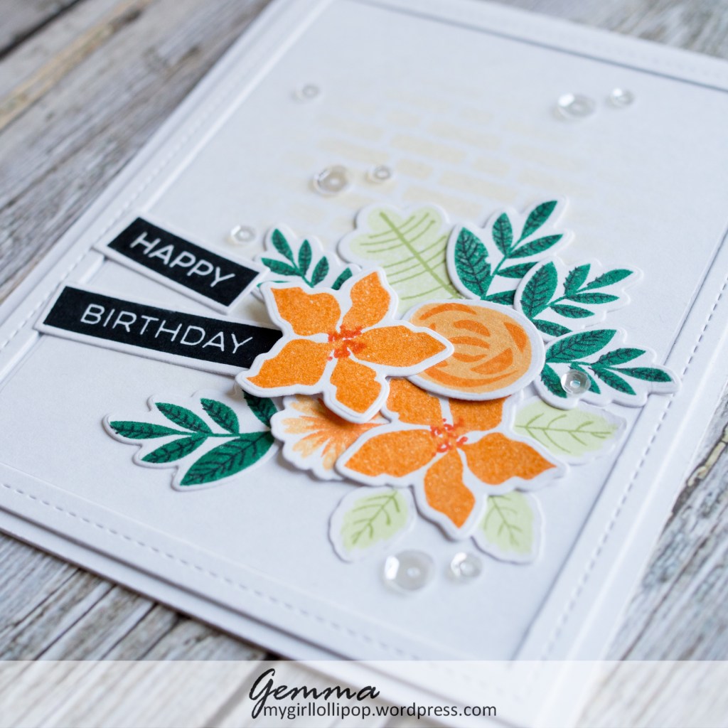 I stamped and die cut flowers and leaves from the mini modern blooms stamp set, then arranged them on the card.