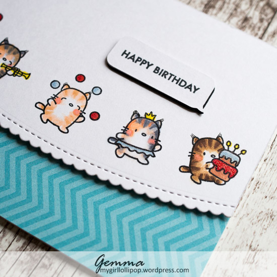 For this card, I wanted a birthday parade of Maine Coon cats (both the recipient of this card and I have Maine Coons).