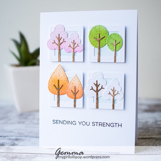 1. Clever and beautiful take on the cue card, Gemma! I love how you blended your inks on each of the trees…so pretty!