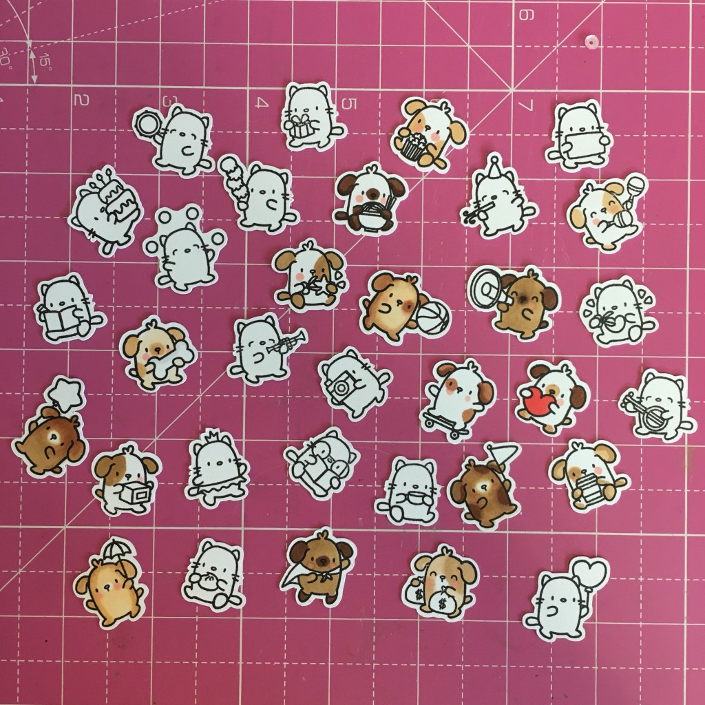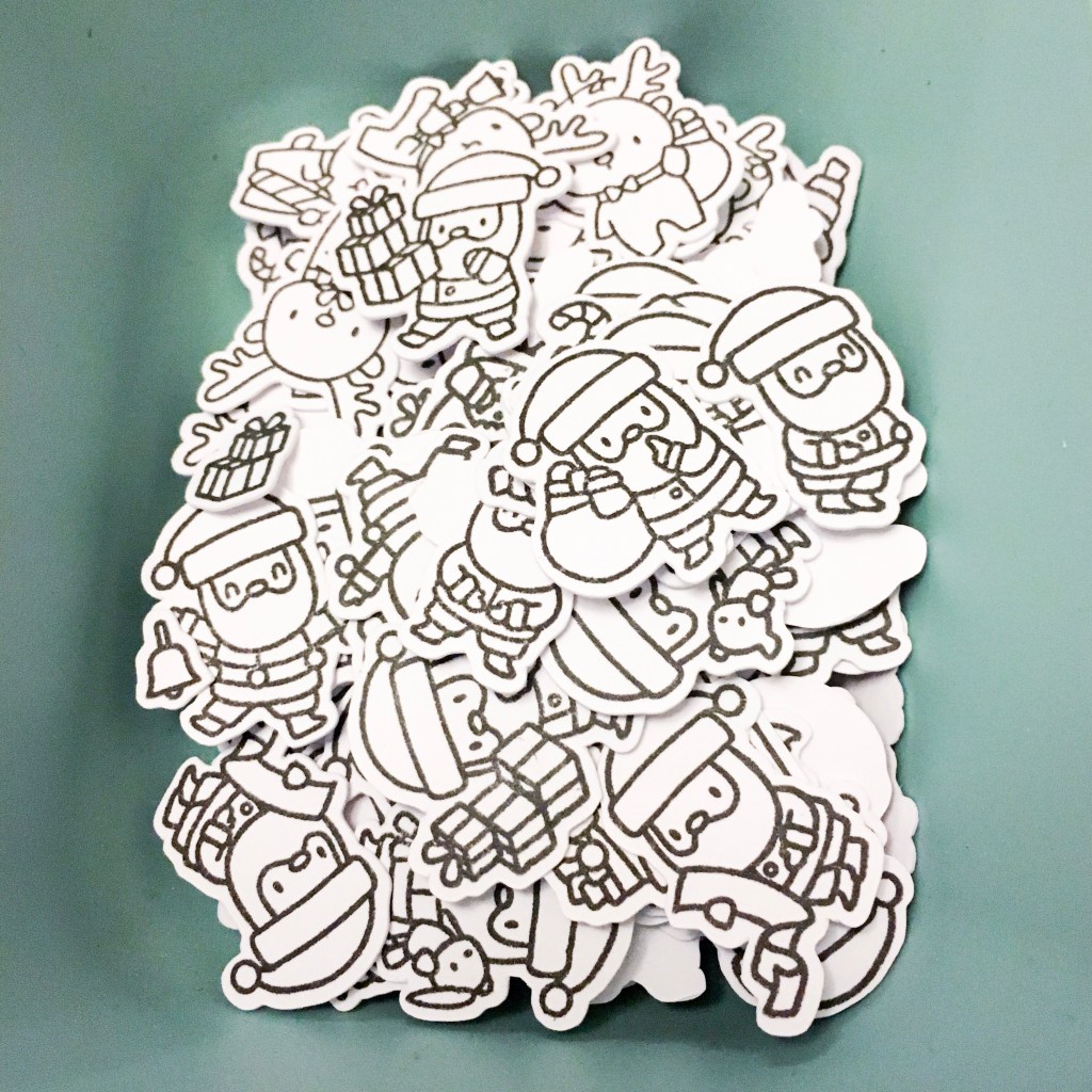 The scanncut will cut out images with a complete stamped line, so be careful with any images with unconnected areas, like the cat juggling in the image below. It’ll want to cut those separately. To get around this, I draw a pencil line connecting them and it works fine, just erase the lines afterwards.