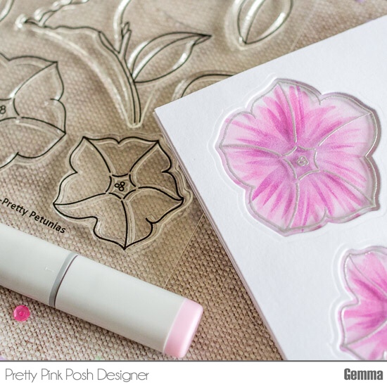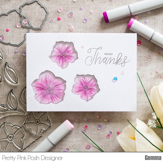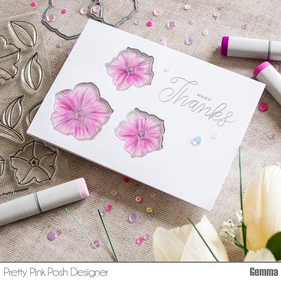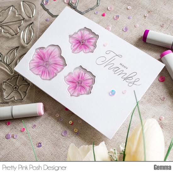 I have a Pretty Pink Posh card to share today, using a beautiful new set called Pretty Petunias.
