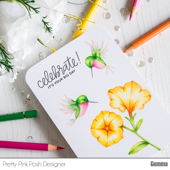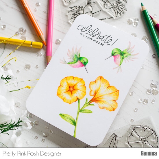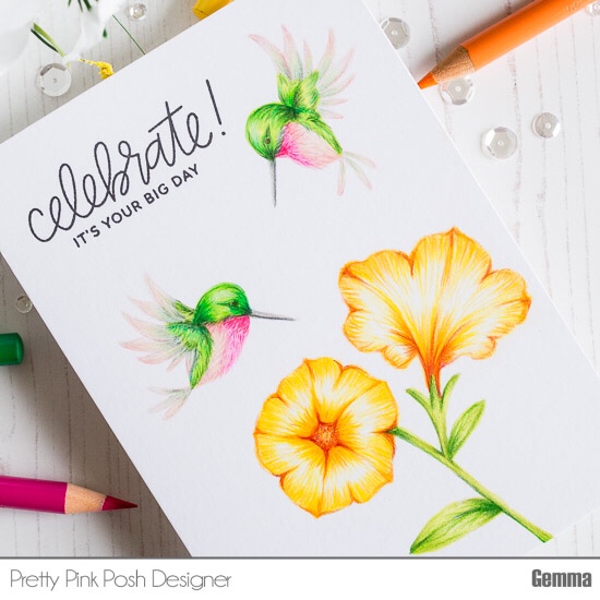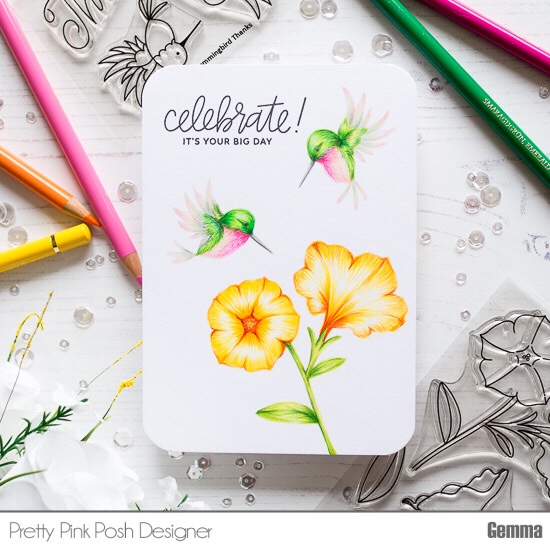 I was inspired to try the technique again, this time with the Pretty Pink Posh Hummingbird Thanks and Pretty Petunias stamp sets.