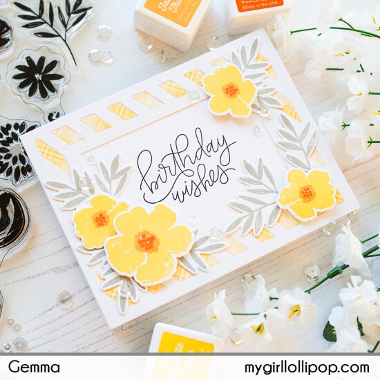 Spring is my favourite season. I look forward to the tree blossom and daffodils, and hopefully some warmer weather! My card today has a spring feel to it, with the sunshine yellows, complimented by a touch of soft grey.