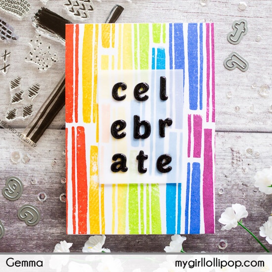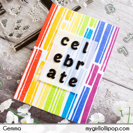 For the sentiment, I die cut the word ‘celebrate’ several times from black card, using the Altenew Simple Alphas die set. I love the font and size of this alphabet set.