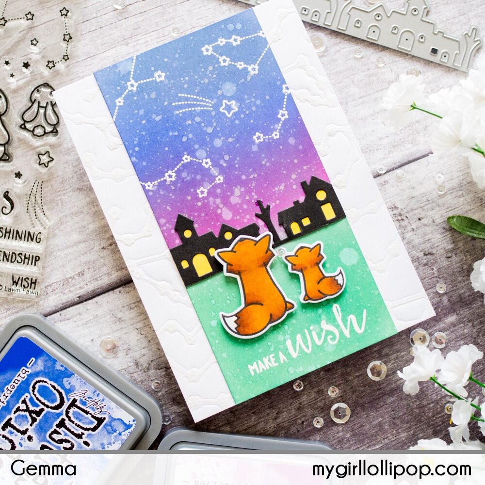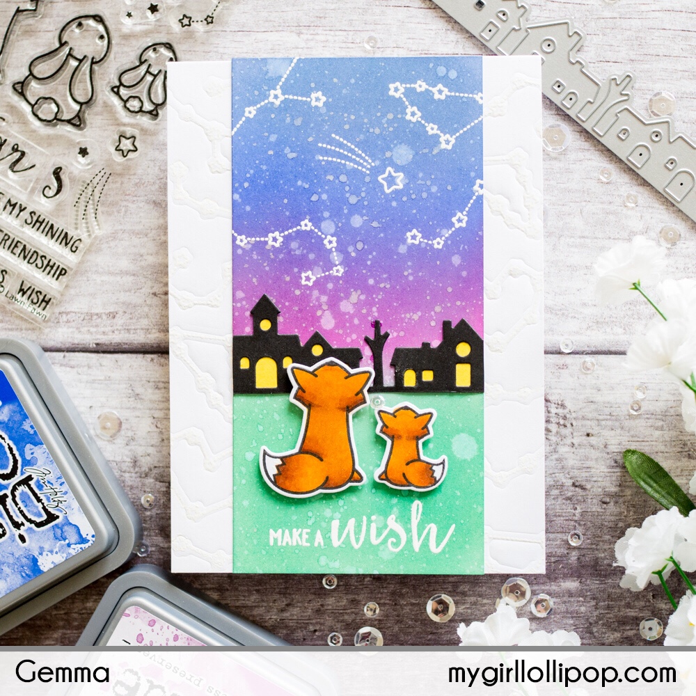 Finally I added two die cut foxes from the same set with foam squares, watching the stars.