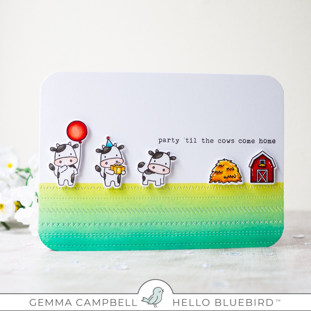 For my card today, I created a scene using three of the cows, who are heading home after a night on the town!