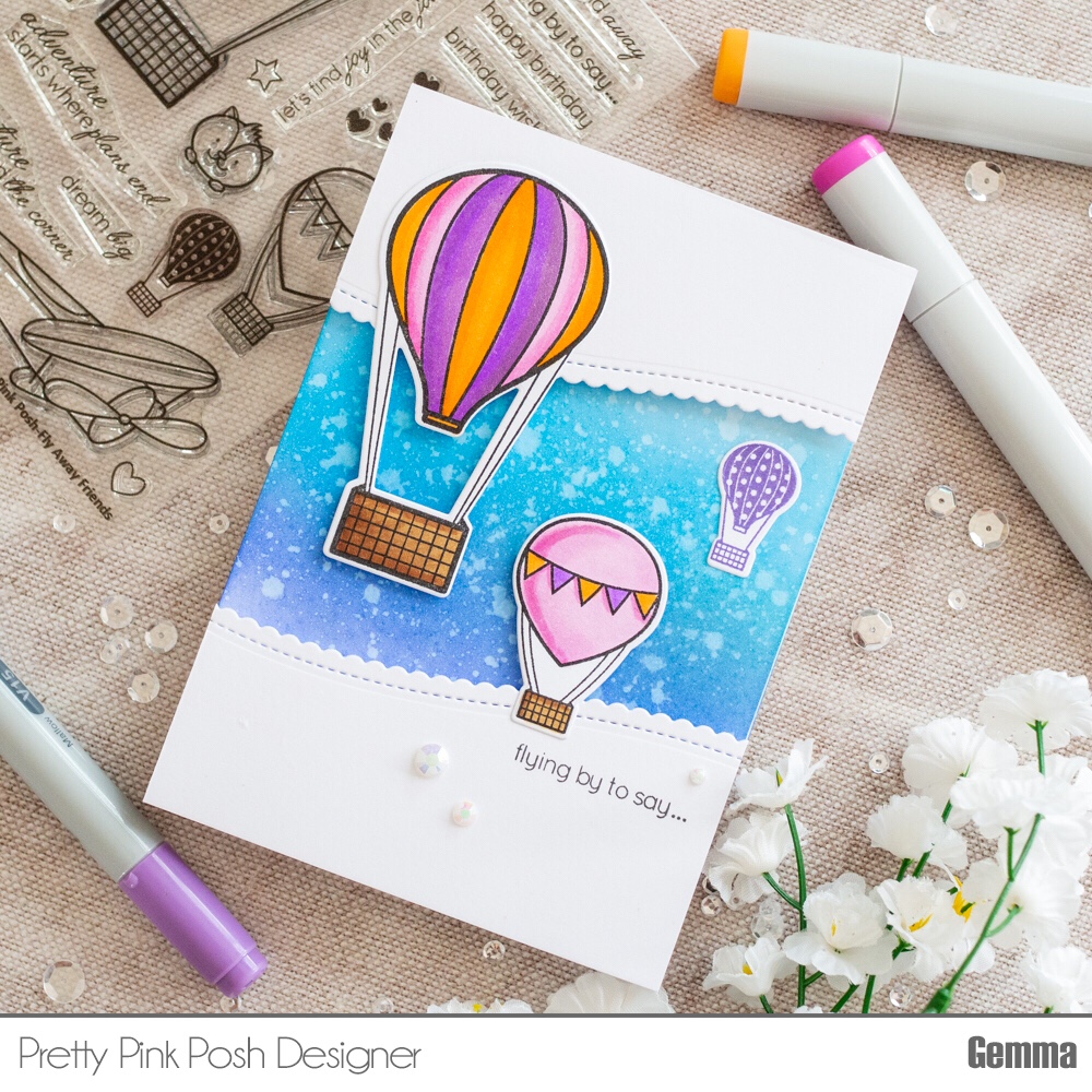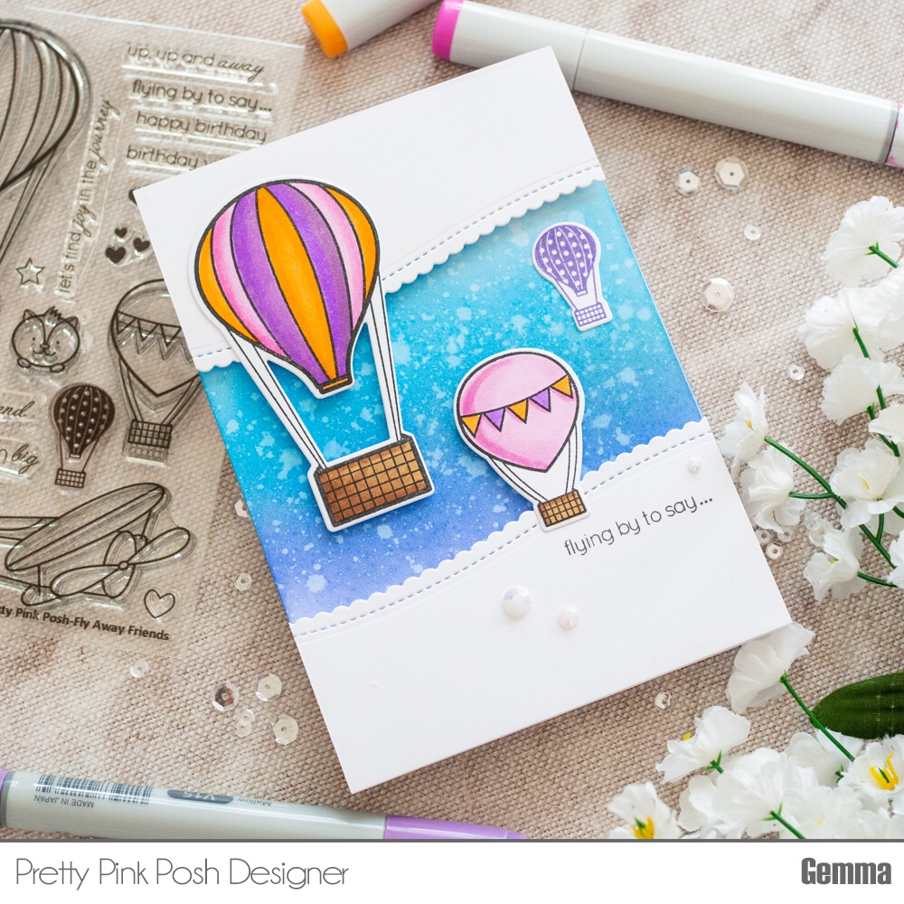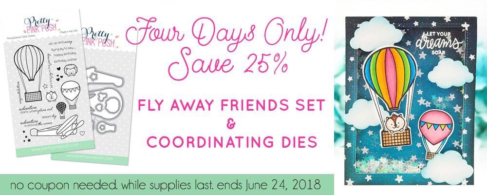 Today I’m sharing a card using an older set from Pretty Pink Posh called Fly Away Friends. This fabulous stamp set and coordinating dies are on sale until June 24 2018, so it’s a great time to treat yourself.