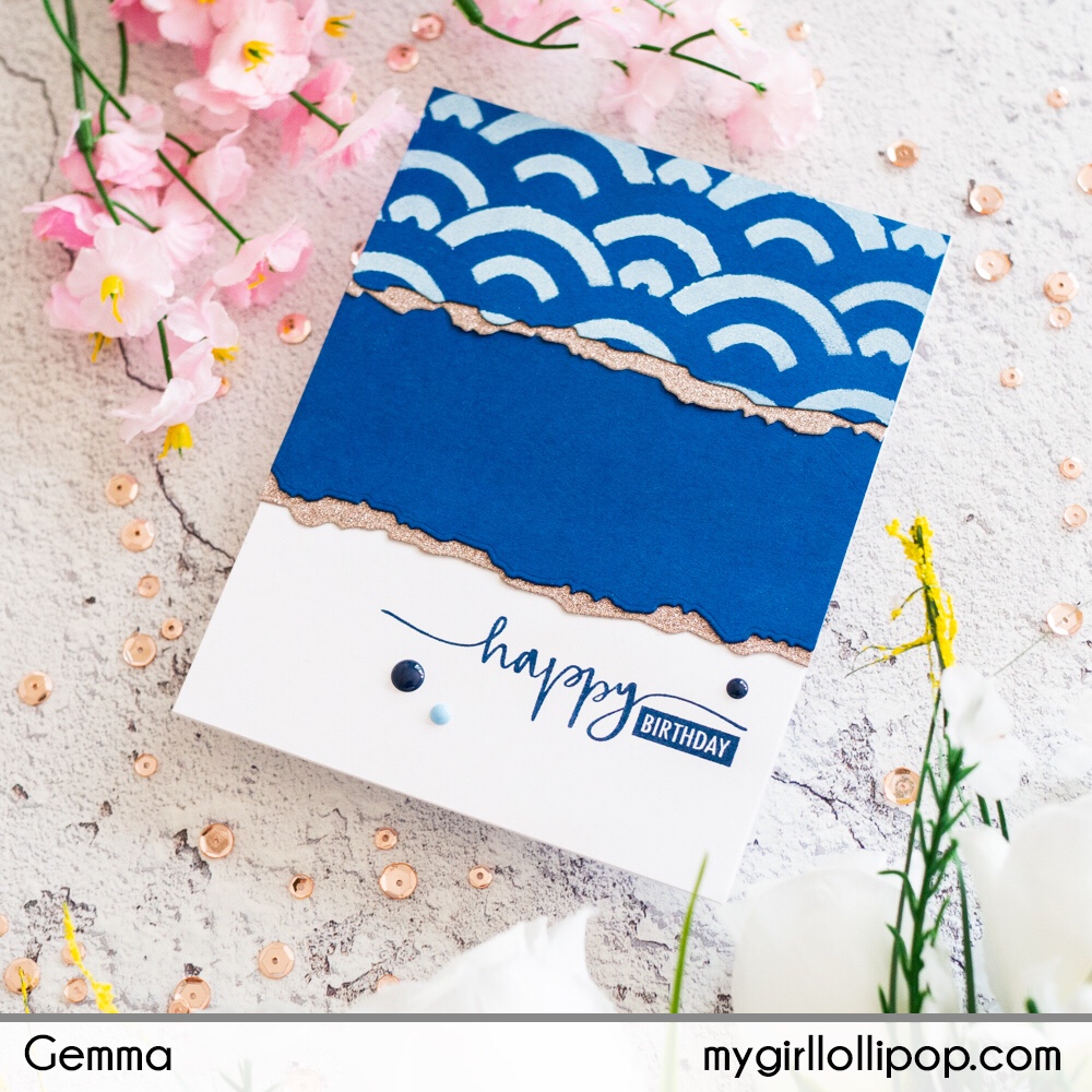 Today I’m sharing a card featuring colour blocking, which is definitely one of my favourite looks. I’m teaming it with navy and rose gold, a favourite colour palette of mine.