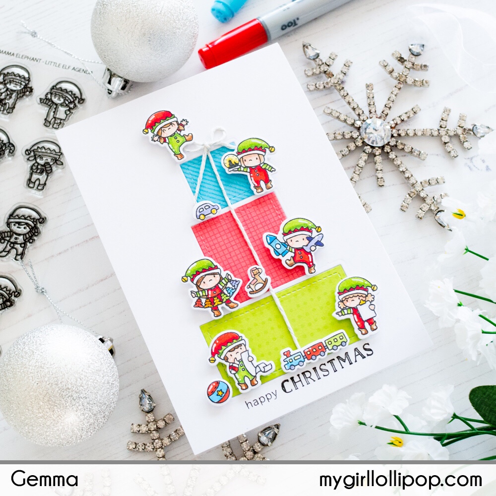 Wow, such great cards! I love the elves on the stack of presents – adorable!