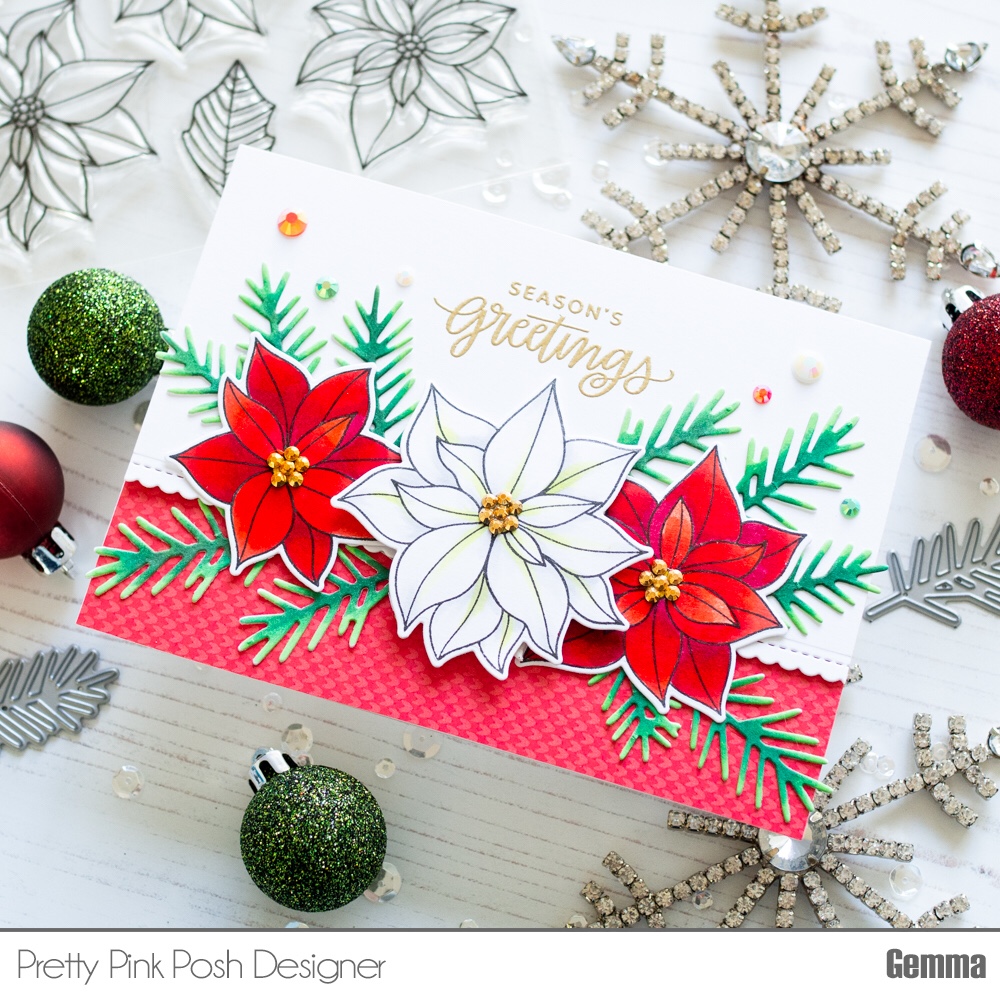 It includes a gorgeous Poinsettia stamp set. I love the floral sets from PPP as they are perfect for different colouring techniques.