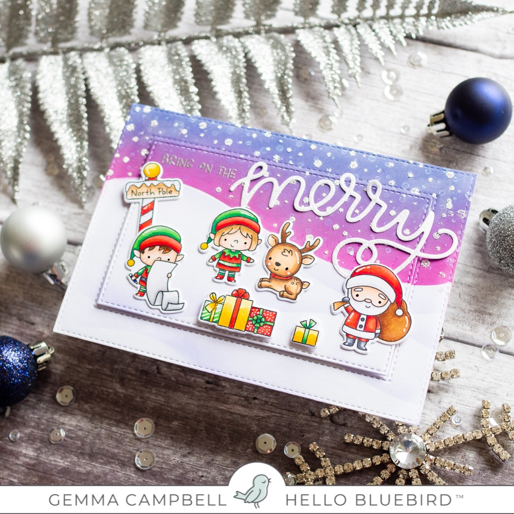 I love the new North Pole Littles stamp set from Hello Bluebird. There’s a fantastic choice of images in this set, perfect for creating a Christmas scene.