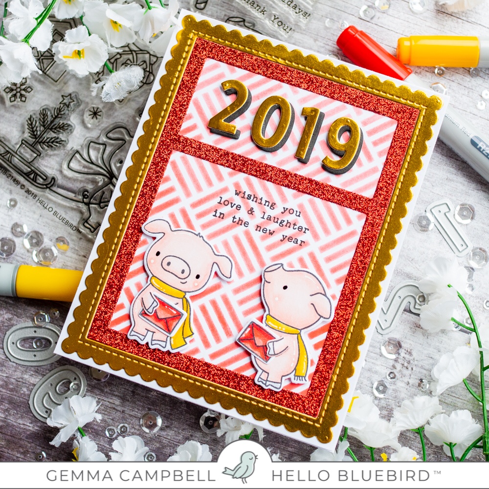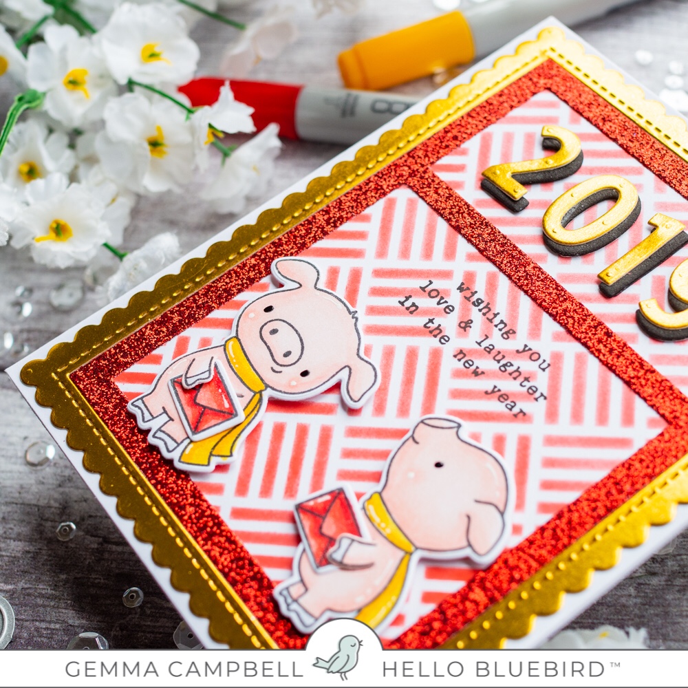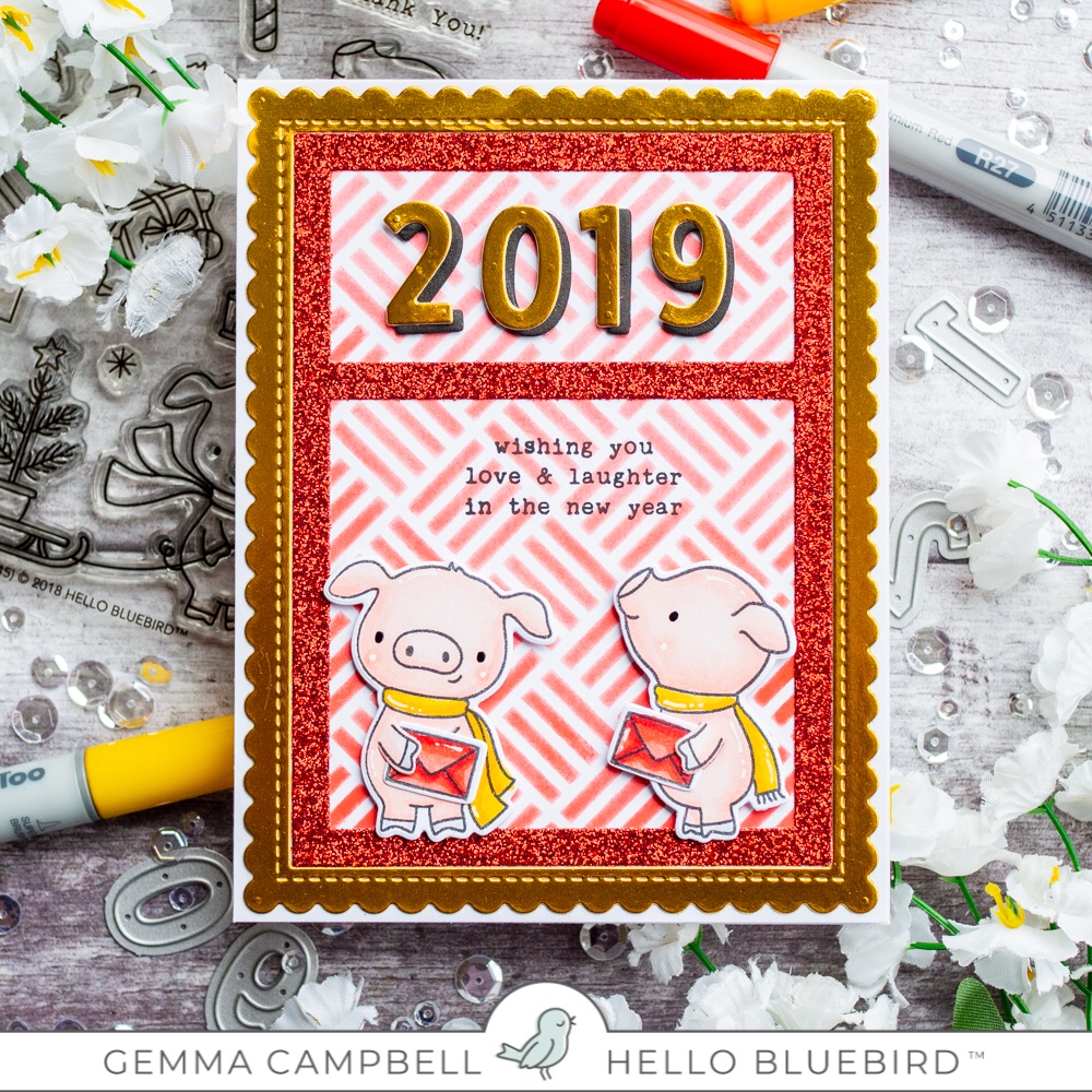 Every year I make one Chinese New Year Card to send to my niece and nephew. I love the bold colours and prints so I always enjoy making it. This year, I reached for my Hello Bluebird supplies, finding the perfect items for my Year of the Pig card.
