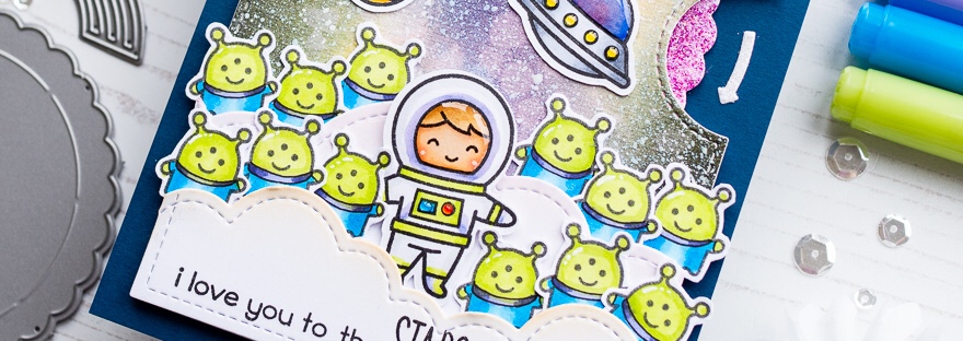 Today I’m on the Seven Hills Craft Blog, sharing a Toy Story Buzz Lightyear themed Reveal wheel card. I used some fabulous stamps and dies from Lawn Fawn.