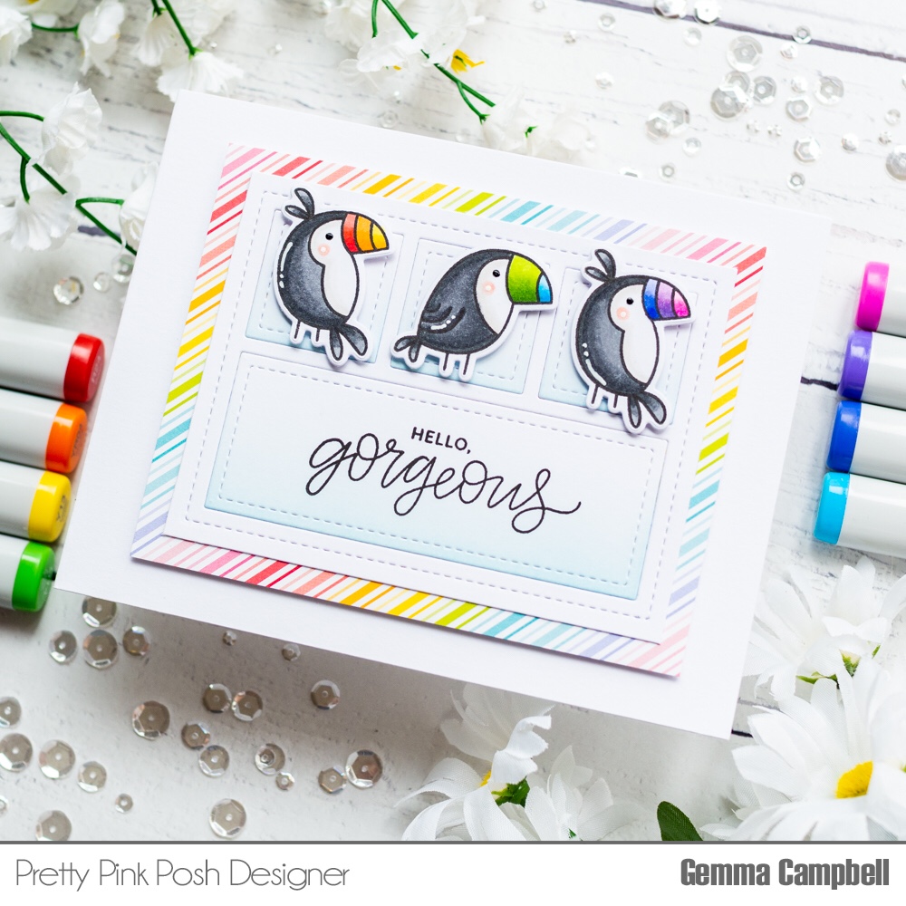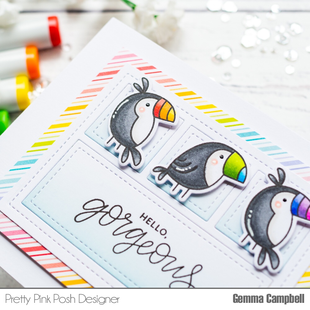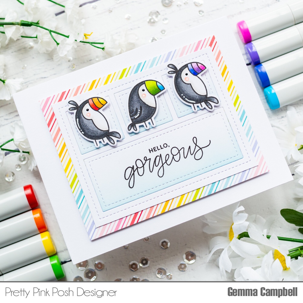 I love to incorporate rainbows on my cards and the Pretty Pink Posh Tropical Toucans are perfect for doing just that.
