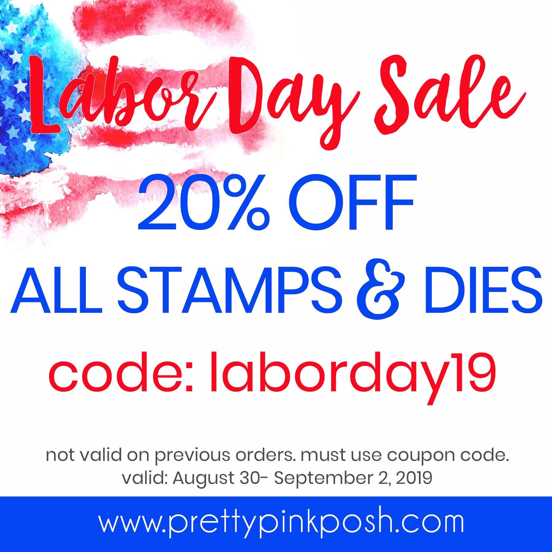 Pretty Pink Posh are having a Labor Day sale in store! Use code: laborday19 to get 20% off stamps and dies. Valid from August 30 – September 2.