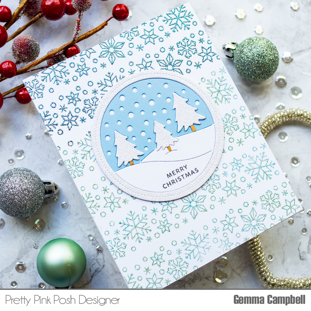 Today I’m sharing a pretty Christmas card using some lovely products from the Pretty Pink Posh October release.