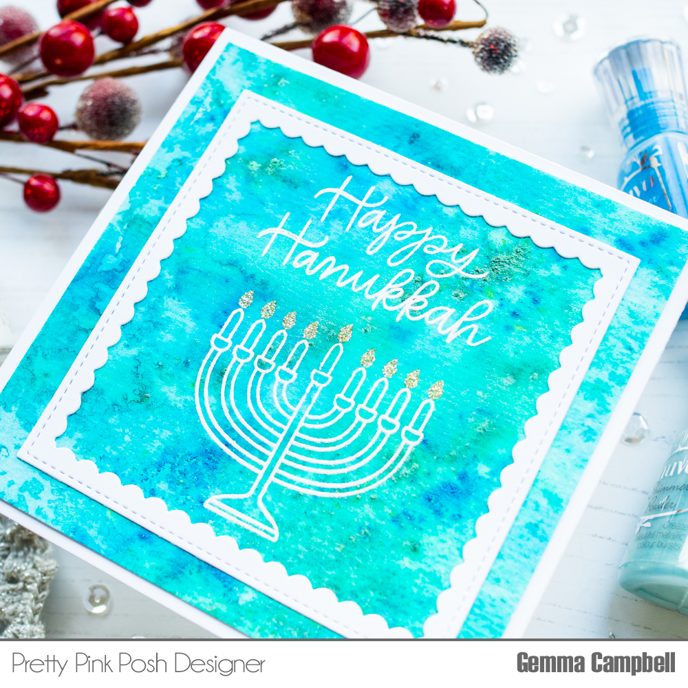 The October release from Pretty Pink Posh included a fabulous mini stamp set called Happy Hanukkah. There is also a coordinating die set and a script word die available separately.