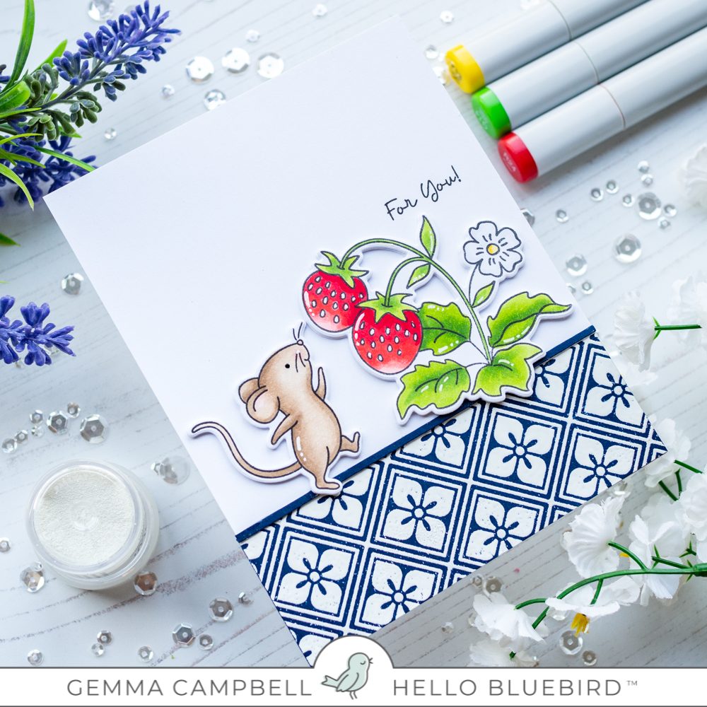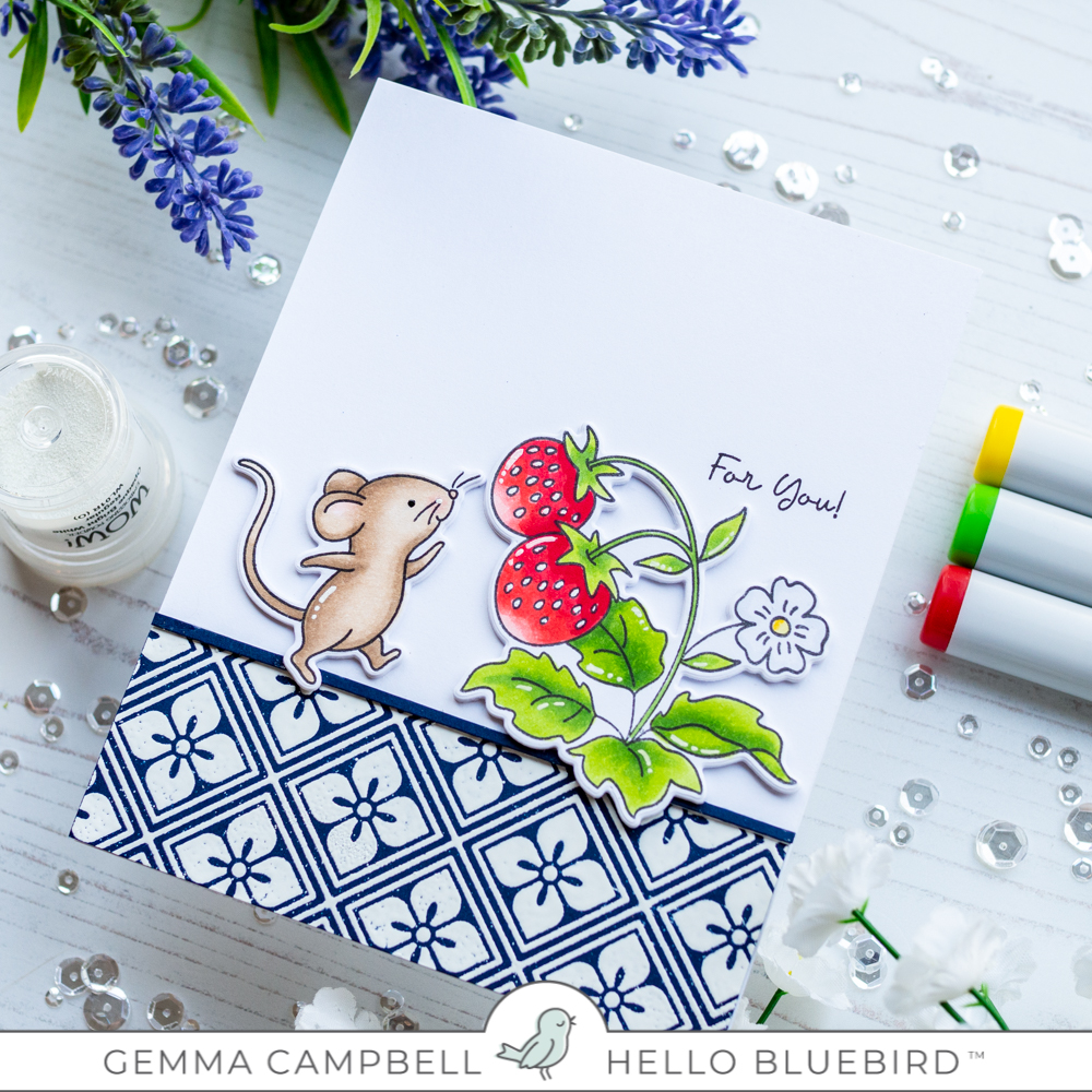 The card is so pretty and i love the way the mice is smelling the juicy red strawberries. Love your color palette too. Stay blessed