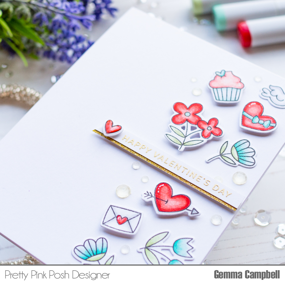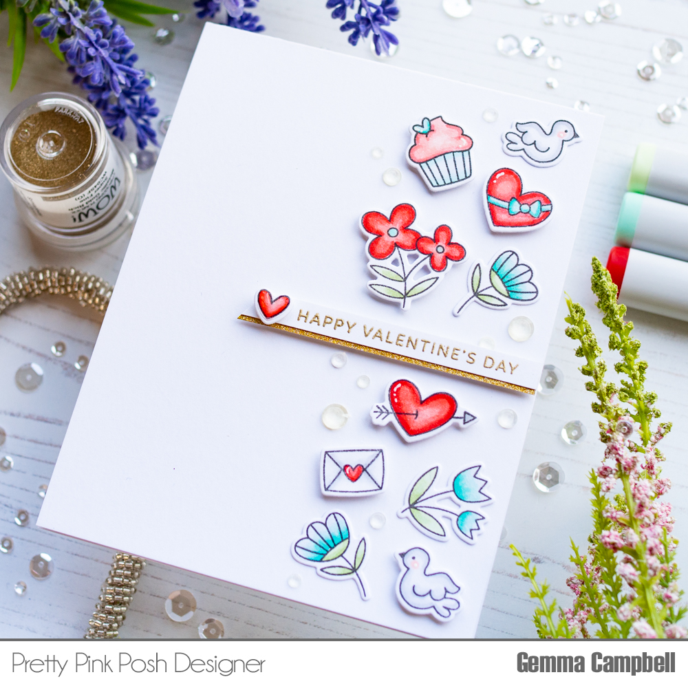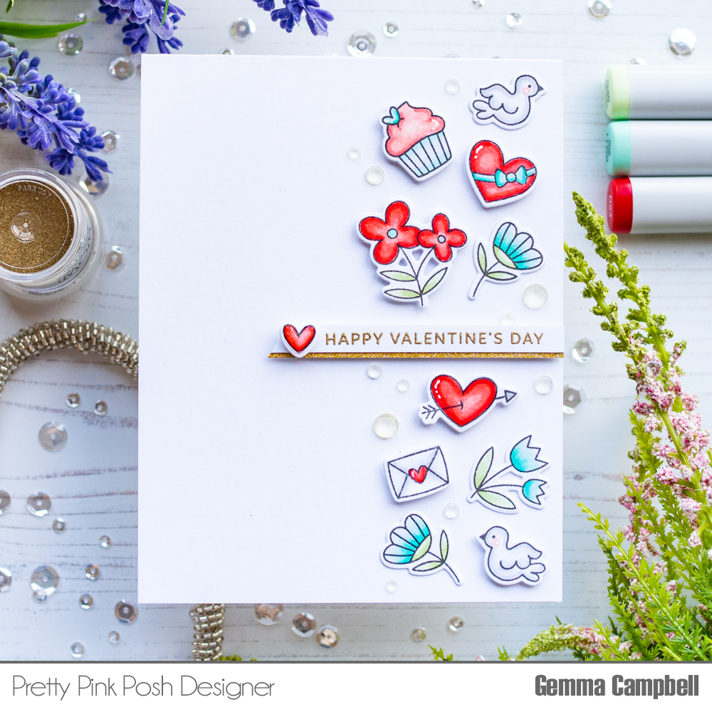 My card features the new Love stamp set, which has lots of smaller images alongside the large word stamp. These smaller images are the focus on this card.