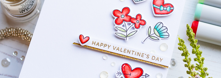 I really like how you used the smaller images from the LOVE set as your card front! What a great idea and I often try to do this, but not as successfully as you! My goodness it is such a clean and impact making card with the way you laid it out. The crystal accents or baubles really make the stamped and colored images POP!