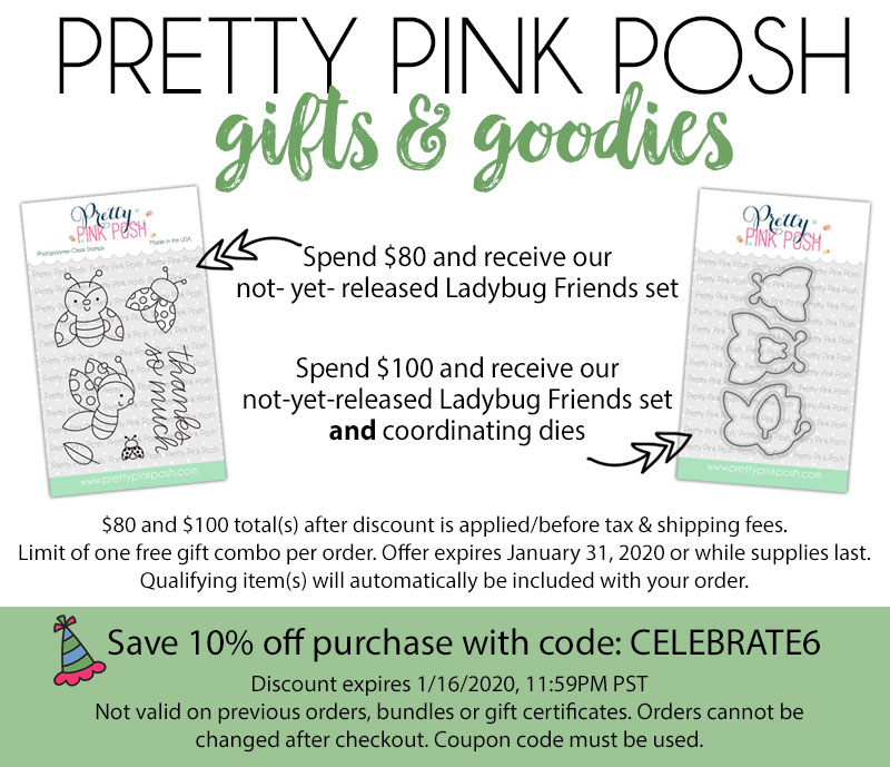 Hello and welcome to my blog! I’m excited to be joining this blog hop, celebrating Pretty Pink Posh’s 6th Birthday and January release!