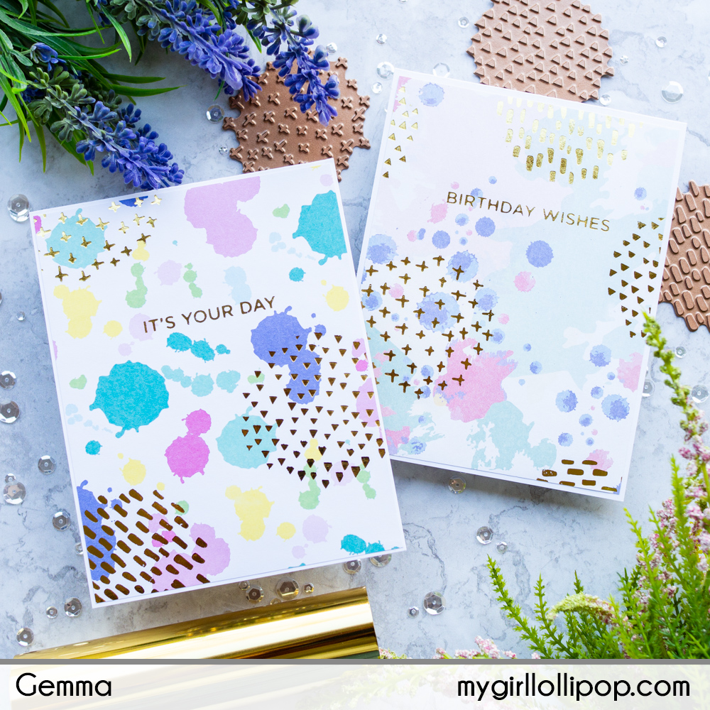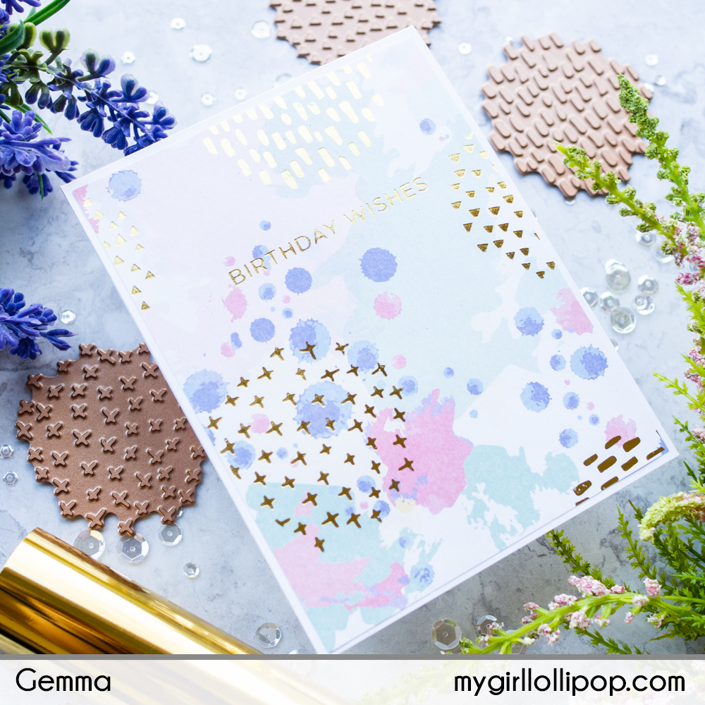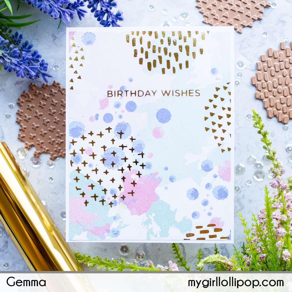 One of my favourite ways to use foiling and glimmer plates is to create beautiful one layer cards. The foiled details really shine, making any design look special.