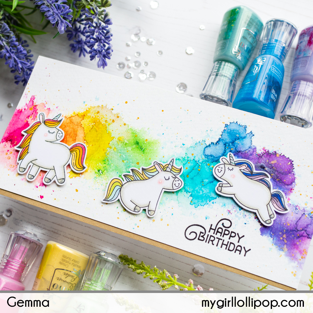 - Finish with some Nuvo Glitter Drops in White Blizzard to the unicorn horns for sparkle.