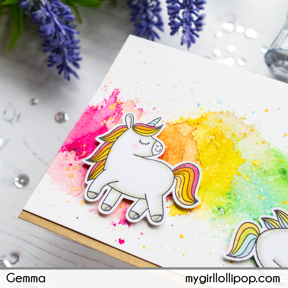 Rainbows and unicorns go together perfectly, so I had to create a rainbow background for my first card.