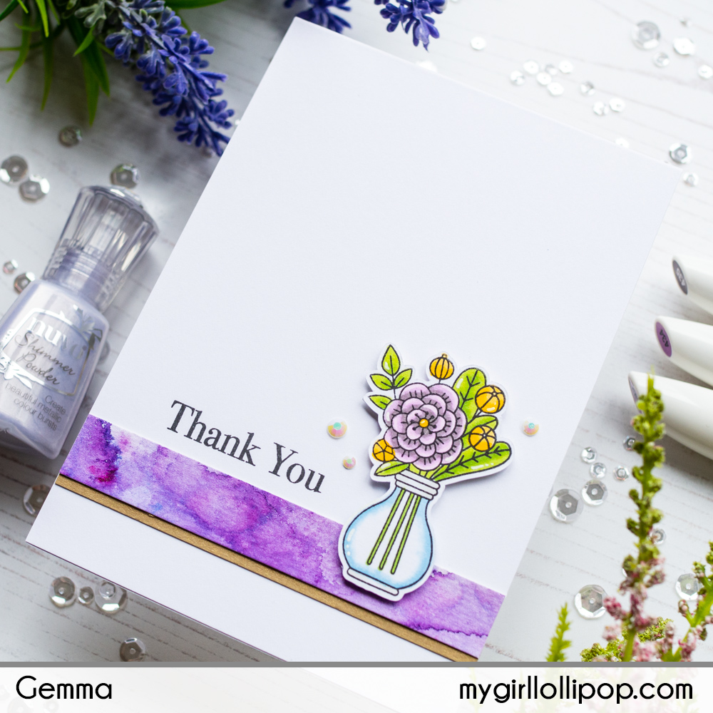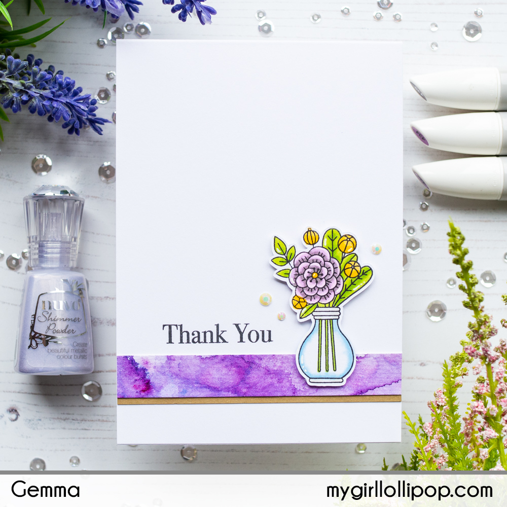 - Stamp a vase of flowers from the Flowers for You stamp set, then colour it with Nuvo Alcohol marker pens.