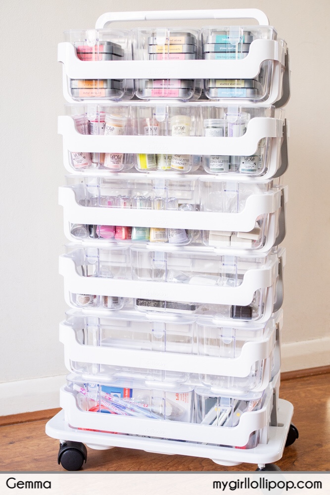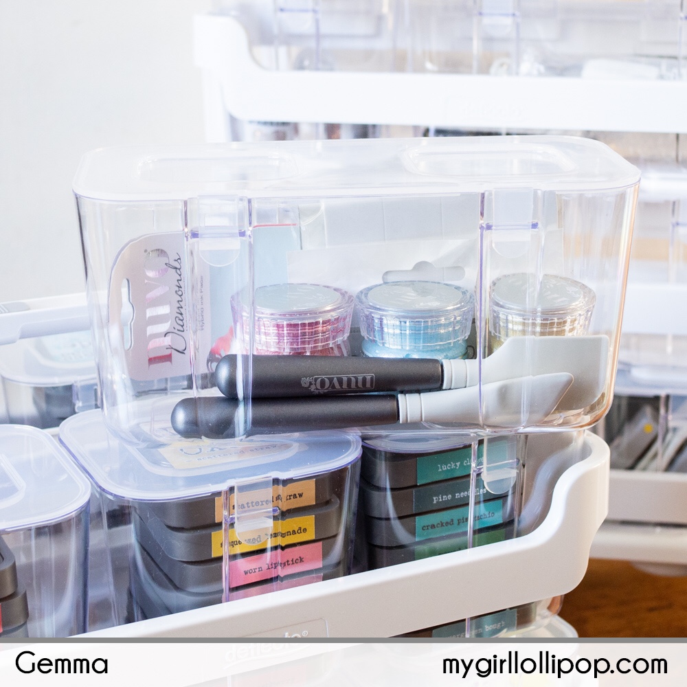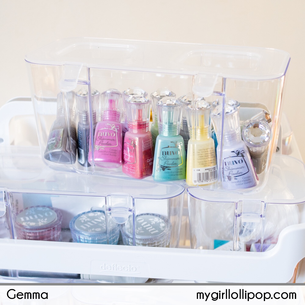 I’ve put my Nuvo Shimmer Powders together in one of the medium storage bins. When I want to work with these powders, I can take the storage bin out of the caddy and have all the powders accessible on my desk.