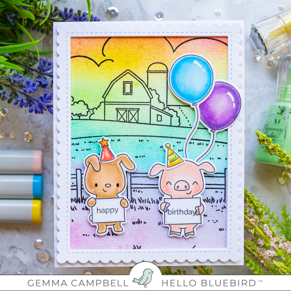 Today I have a rainbow farmyard card to share featuring new and older release Hello bluebird stamps.