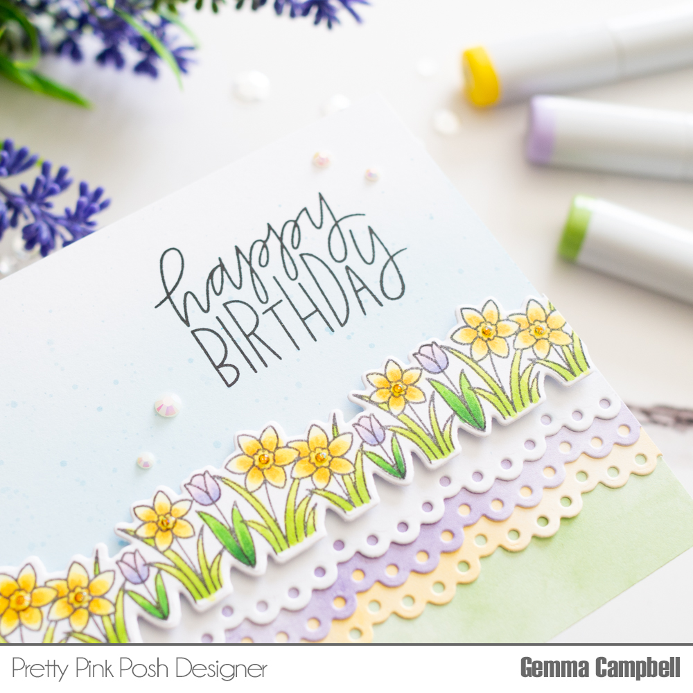 Today I have a card to share featuring some border stamps and dies from Pretty Pink Posh. Layering borders together gives such a pretty look.