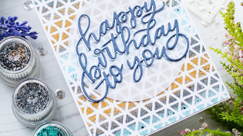 On my card today, I used the fabulous Riviera trio with the Triangles stencil from Pretty Pink Posh.