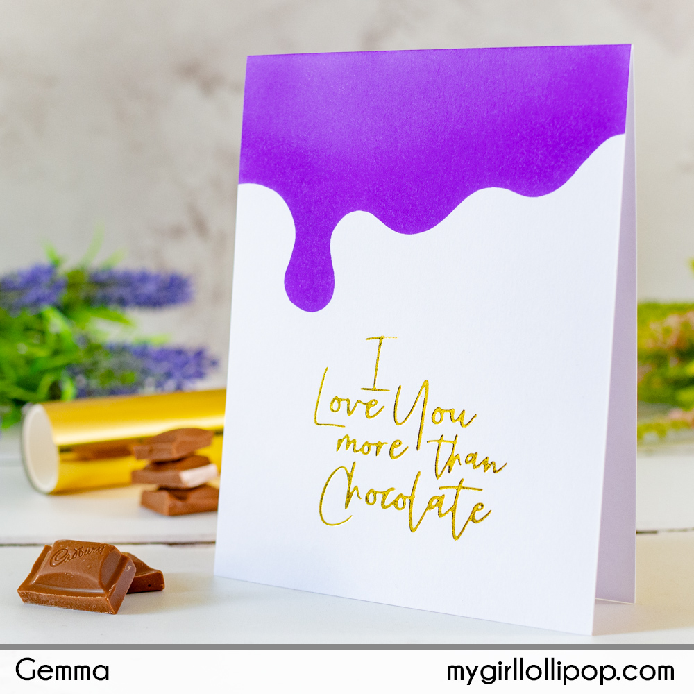 This colour reminds me of the one that a popular chocolate brand in the U.K. uses for their packaging. It’s so iconic that, combined with the gold foiled sentiment, it really makes me think of chocolate.