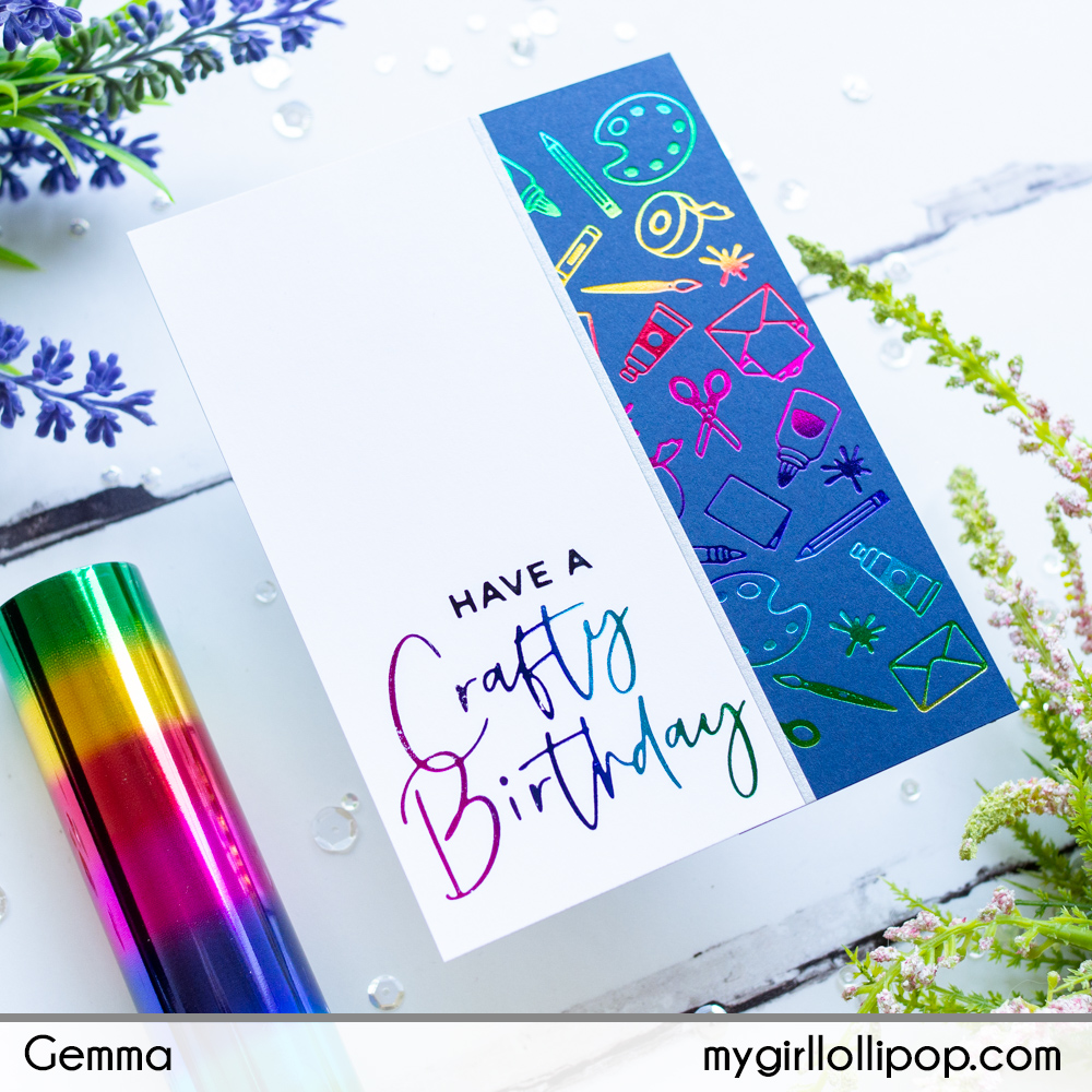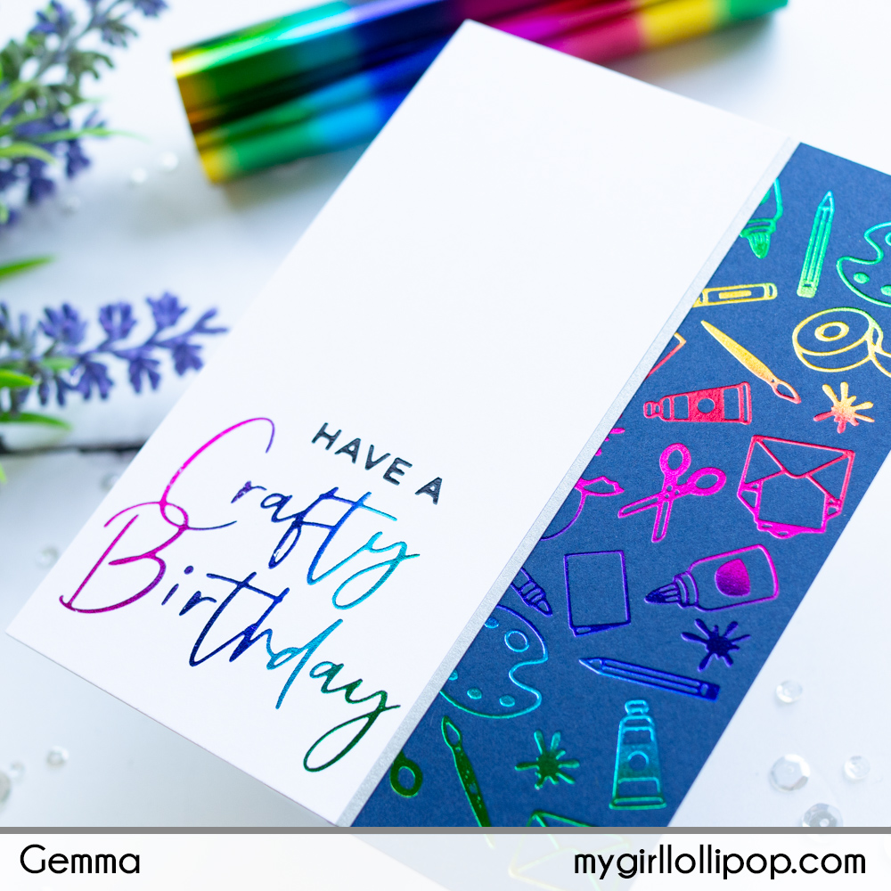 I made another card, this time foiling the border twice on white card with the rainbow foil.