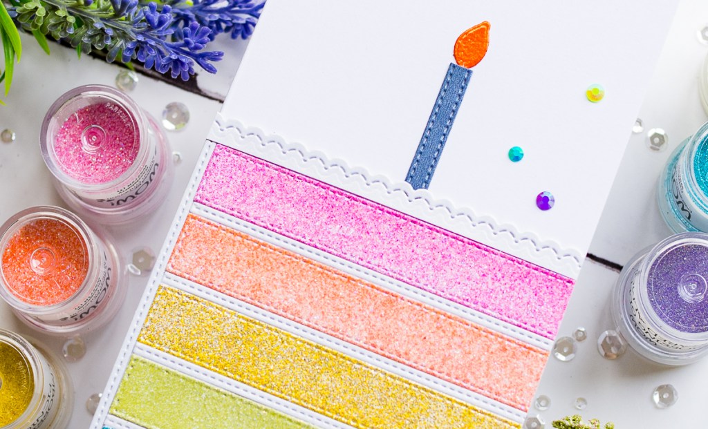 Today I’m on the WOW Embossing blog, sharing a Rainbow Cake card, created using embossed cardstock strips.