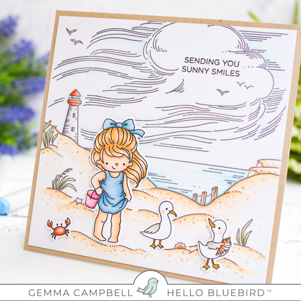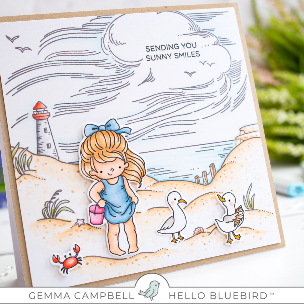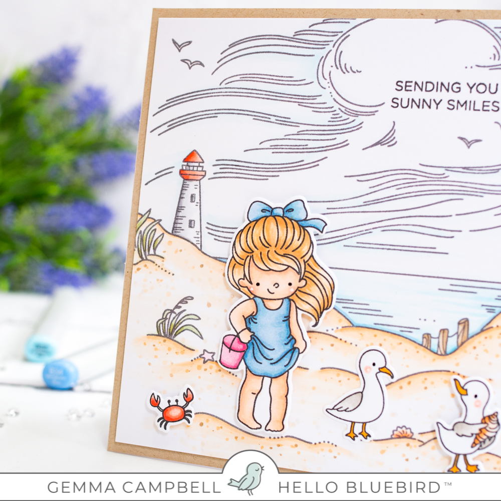 I was so excited to see this beautiful scene in this release, as it’s just perfect for many of the summer themed stamp sets from Hello Bluebird.