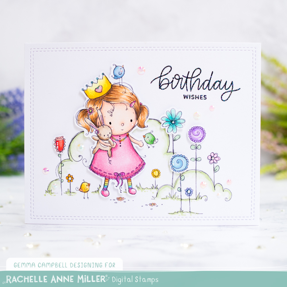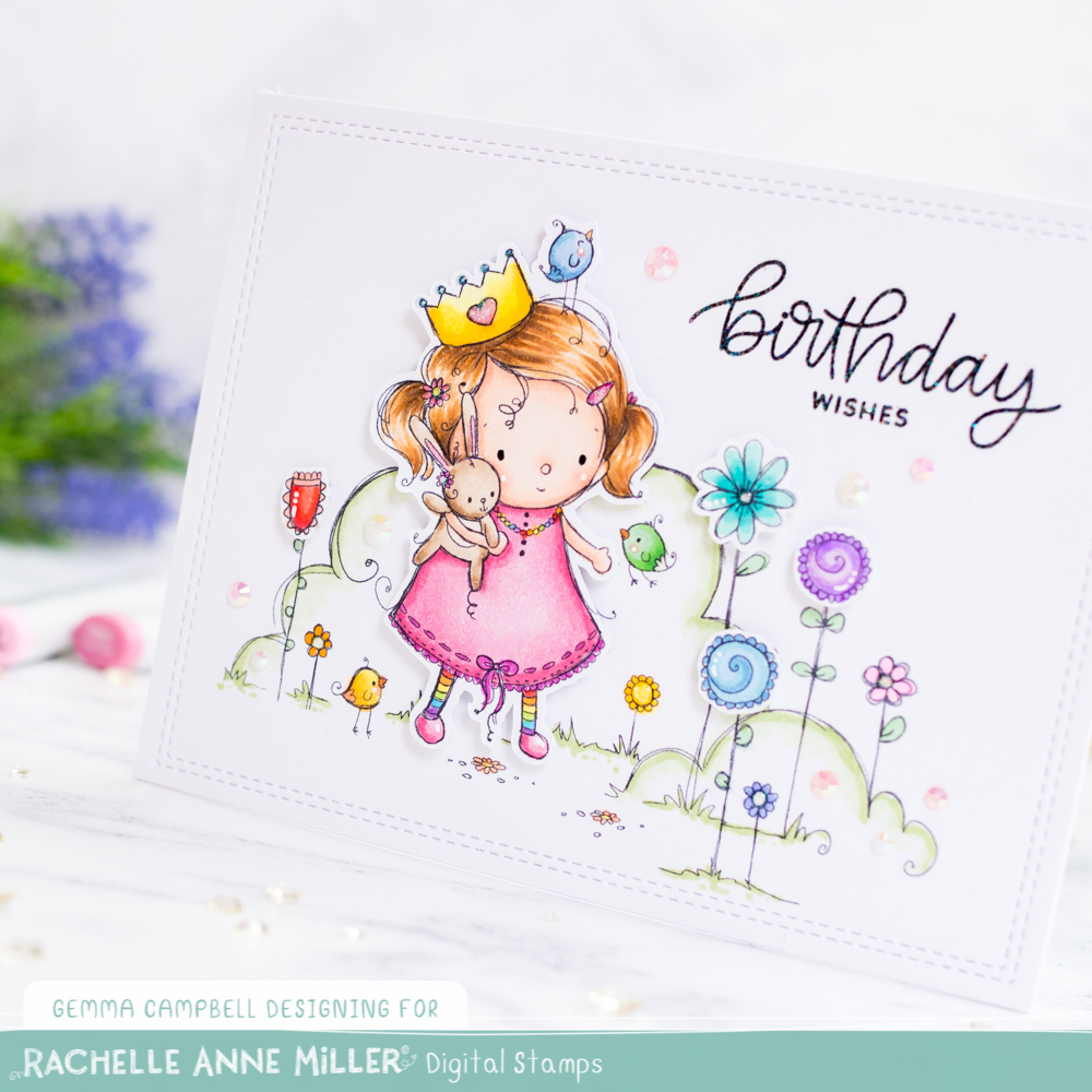 Today I have a card to share using the sweet Princess Castle digi stamp from Rachelle Anne Miller Designs.