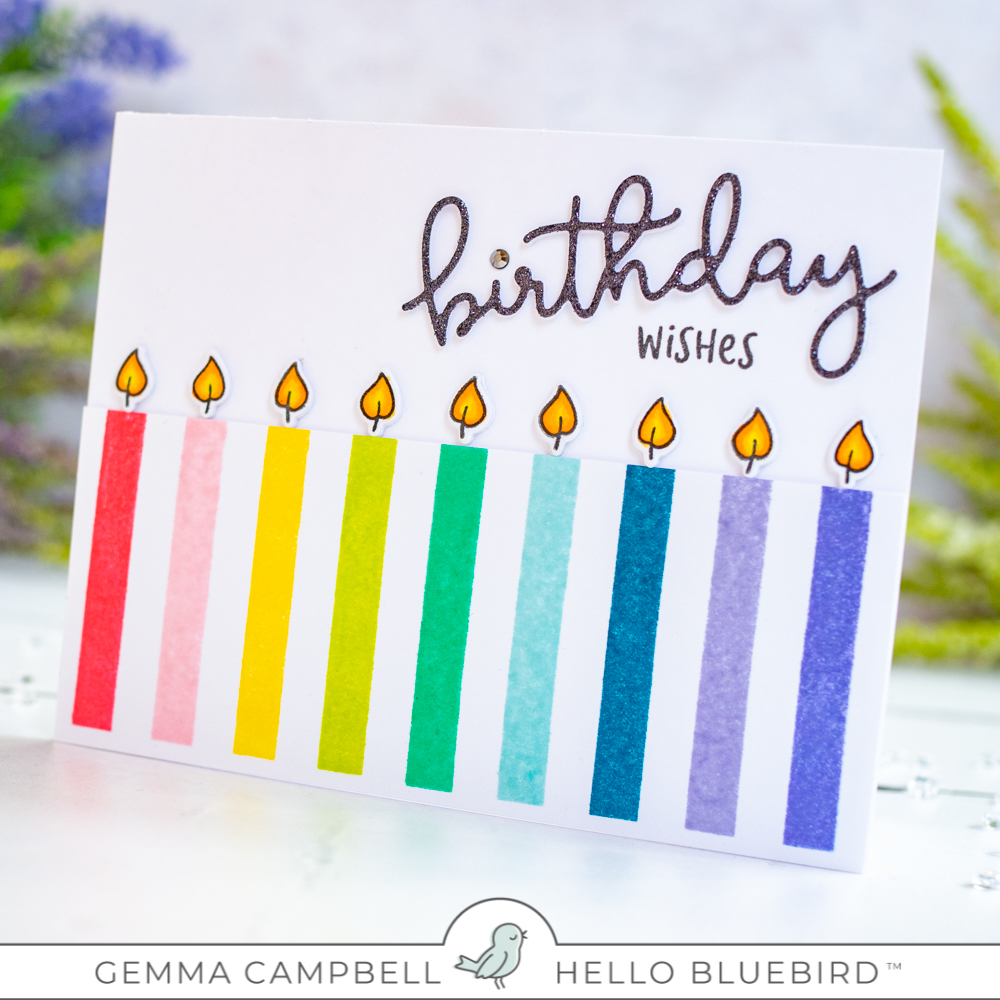 Today I’m showcasing the Hello Bluebird Simple Stripe background. The background stamp is 6×6 but I used a section of it on my card for a different look.