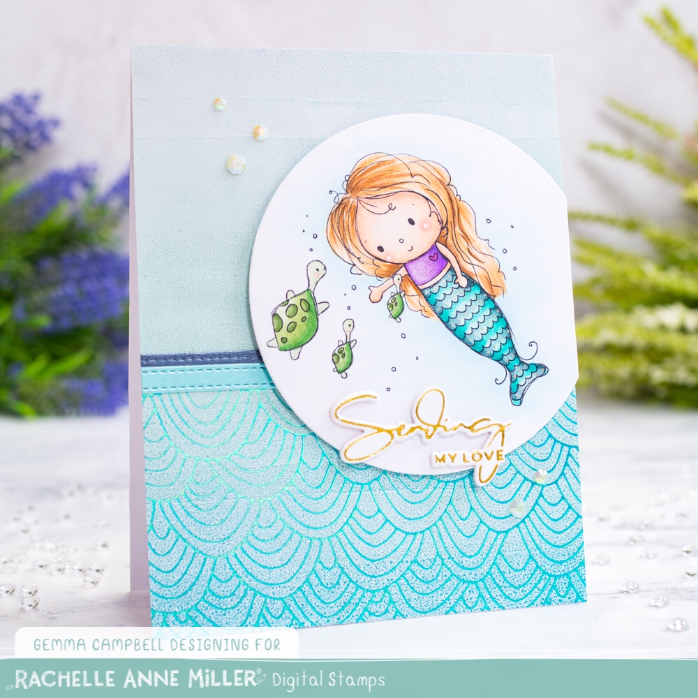 Today my card features the really sweet Mermaid digital stamp from Rachelle Anne Miller. This is a beautiful image and such fun to colour.