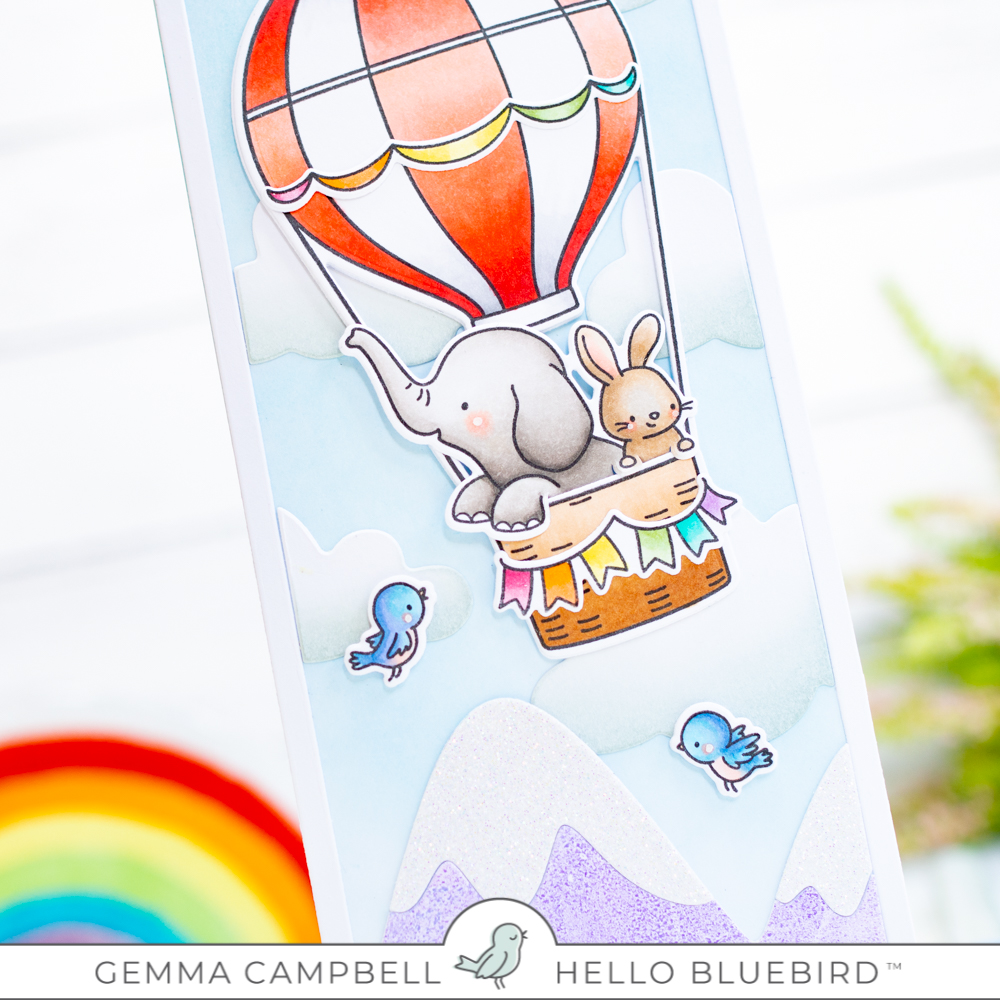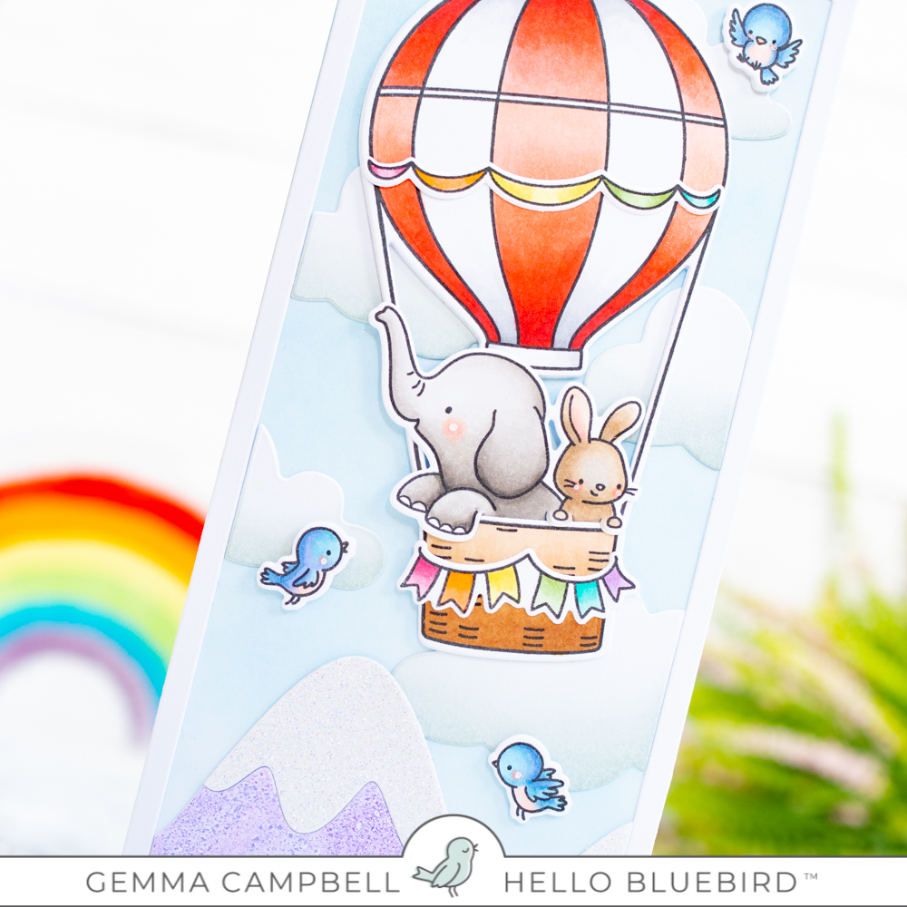The coordinating dies for these adorable critters cut the images out so their paws sit over the hot air balloon basket. I love this kind of clever detail that Hello Bluebird are so good at doing.