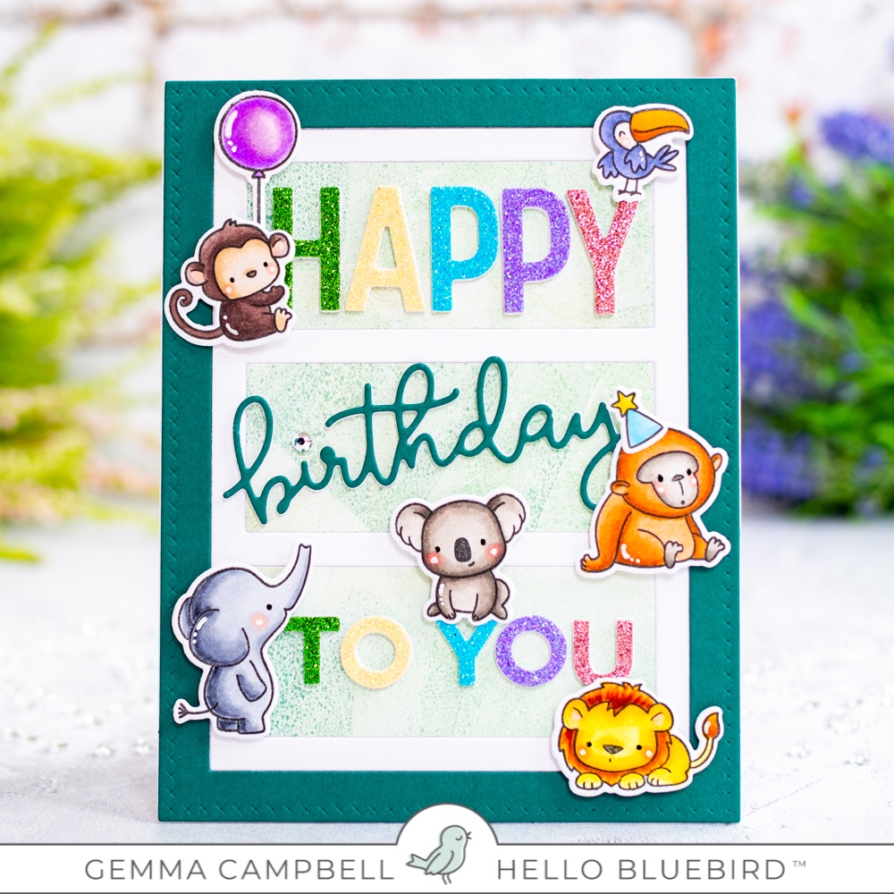 The new Jane Small Alphas are the perfect size to finish the birthday sentiment, fitting the space in the Gallery #6 frame.