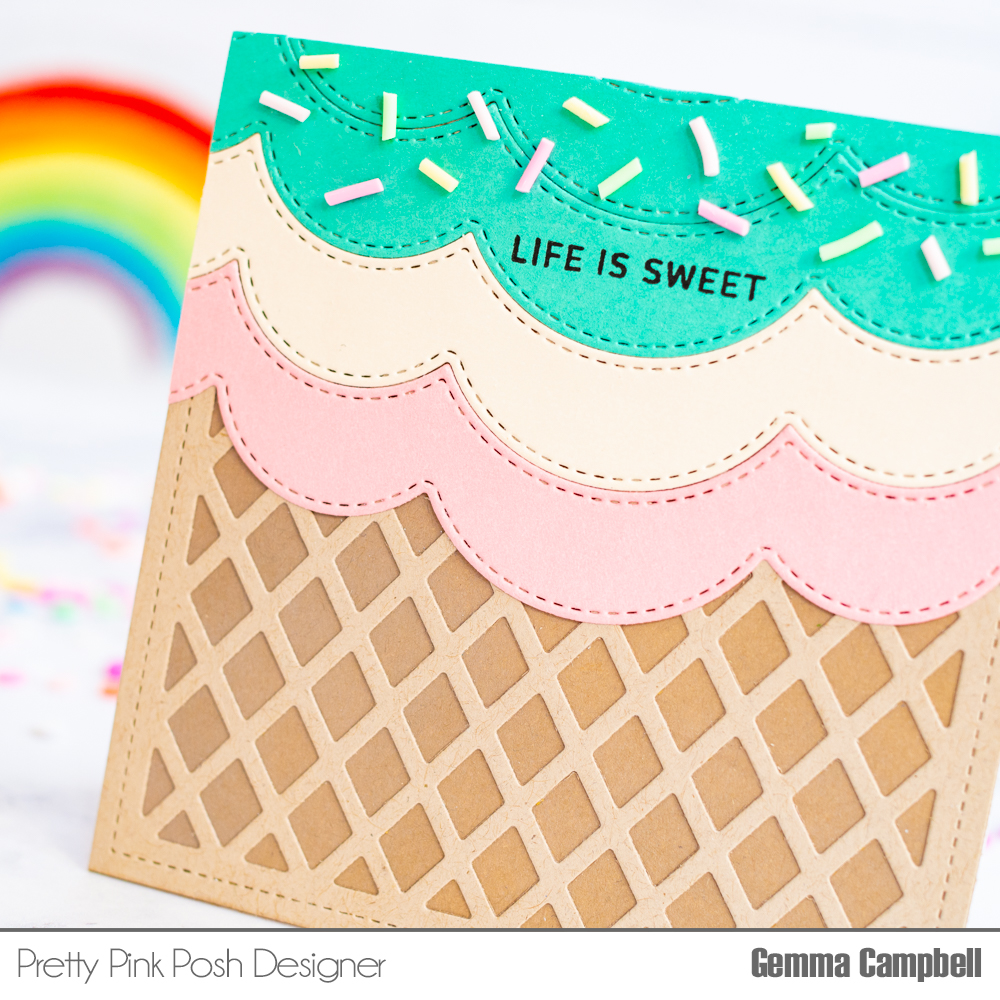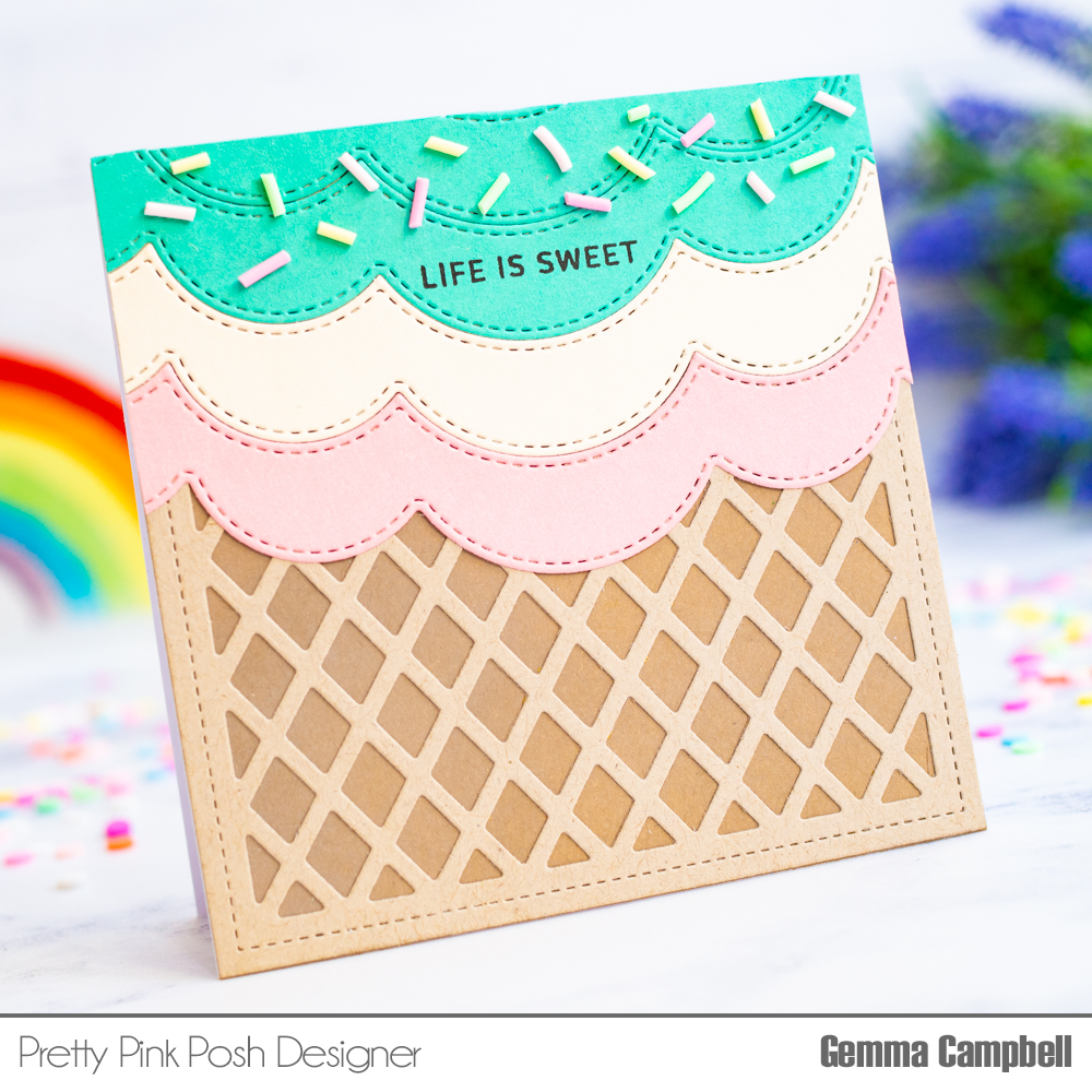 My Pretty Pink Posh card today is inspired by ice cream and waffle cones that I enjoyed on my recent vacation.