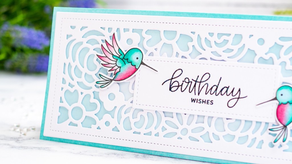 I’m on the Pretty Pink Posh blog today, where I’m sharing a CAS card using the Slimline Floral Cover die. This pretty and intricate die looks beautiful with a clean and simple look.