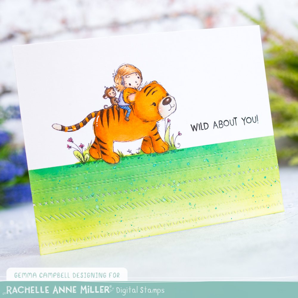 Today I’m sharing a card using the new Tiger Girl digital stamp from Rachelle Anne Miller Creative Studios. Originally available with a boy, this lovely image now features an adventurous girl.