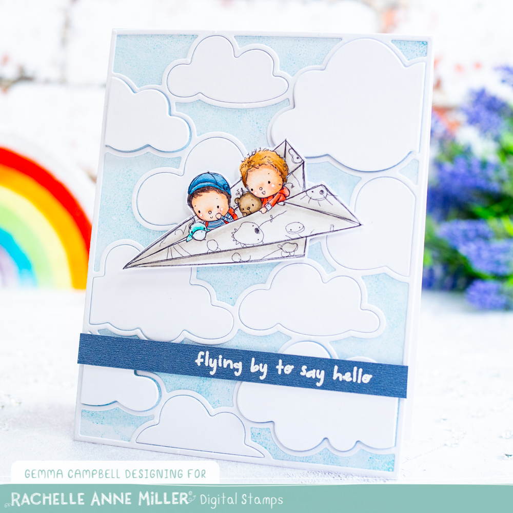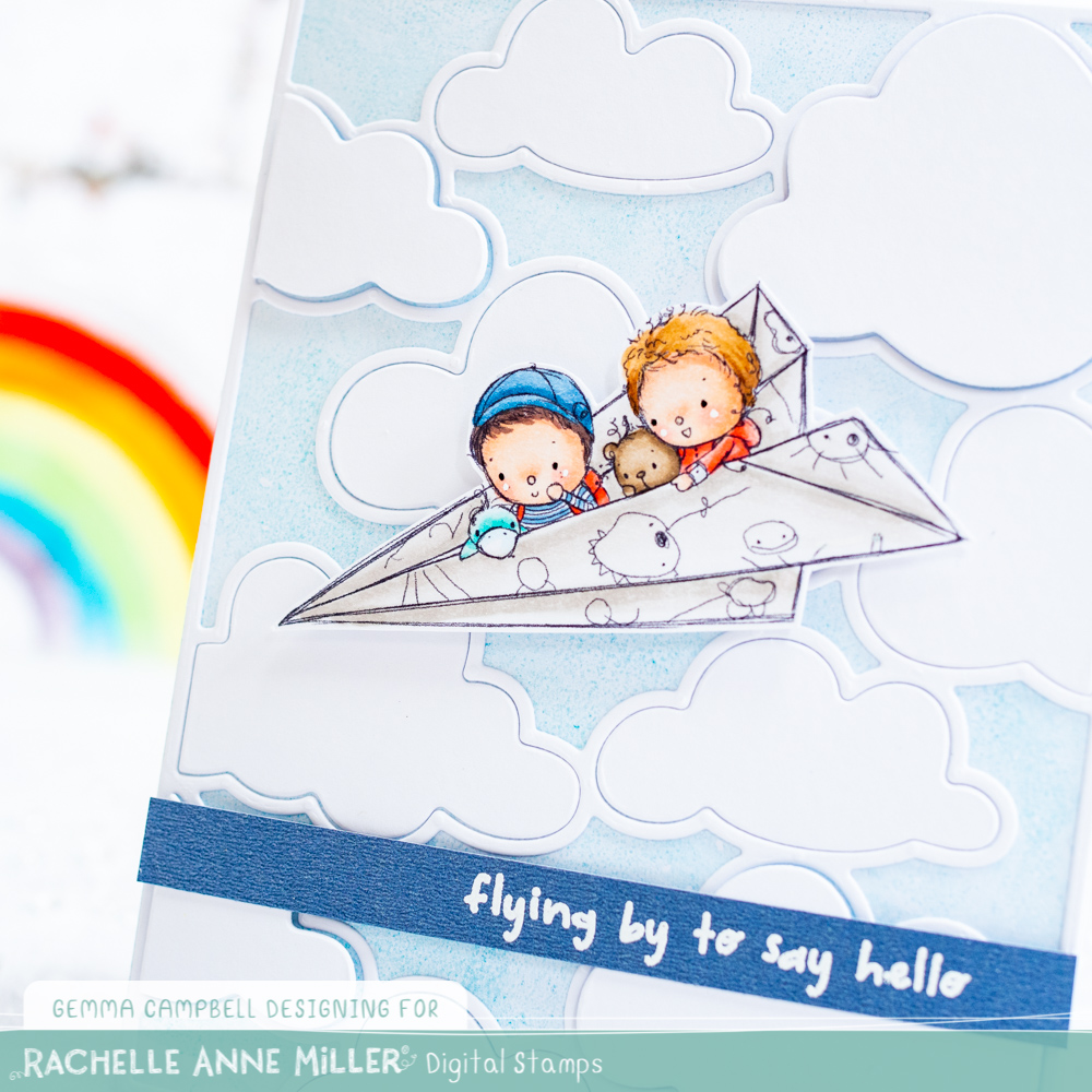 Today I’m sharing a card with the Paper Plane digital stamp from Rachelle Anne Miller Creative Studios.