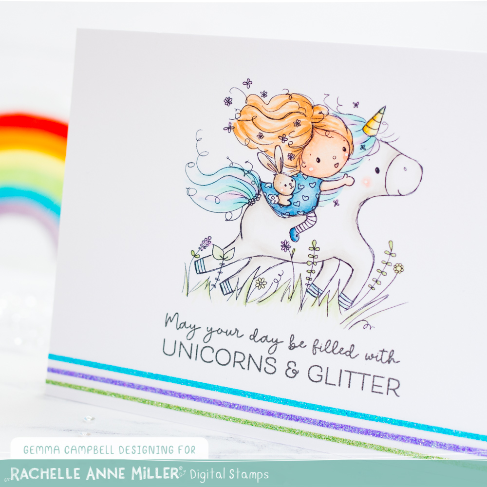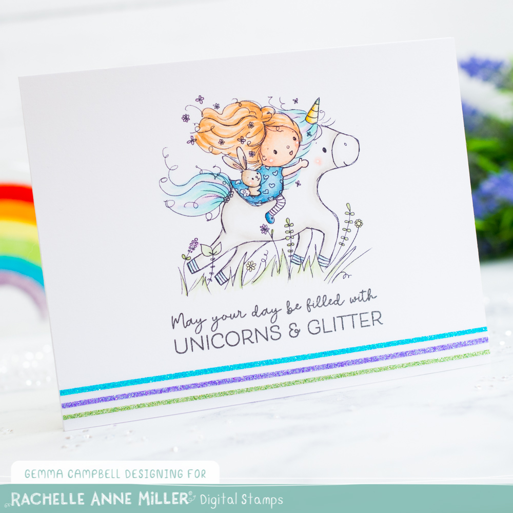 I made the card I’m sharing today for my niece’s birthday. The beautiful image is called Unicorn and is available at Rachelle Anne Miller Creative Studios (link below).