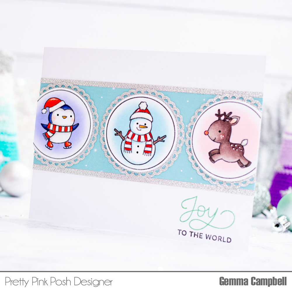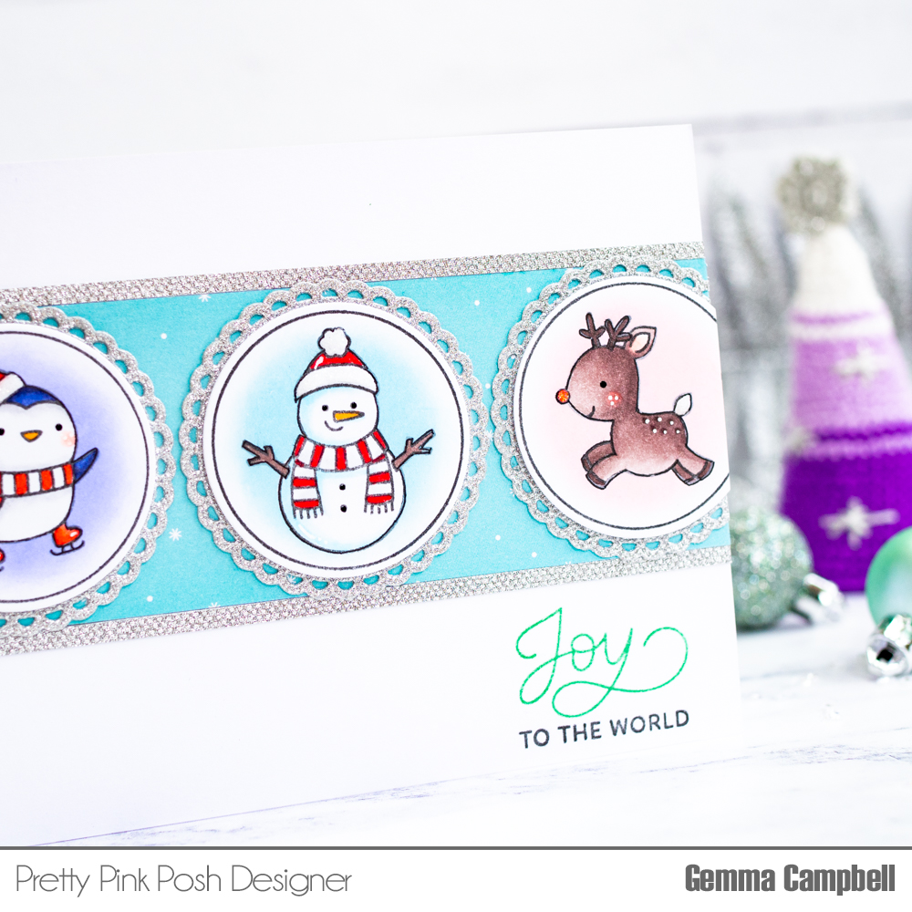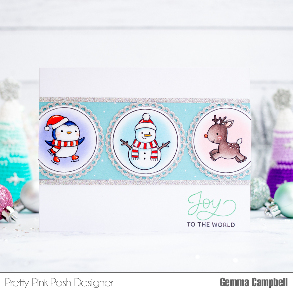My card today features the fun Winter Circles stamp set from Pretty Pink Posh, along with the must-have Holiday Scripts stamp set.